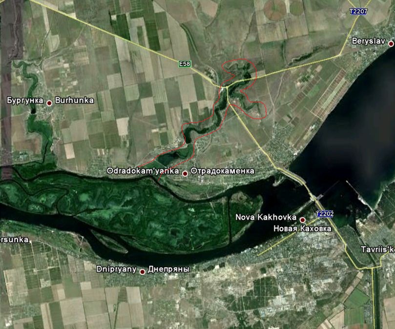 Красным отмечено Шиловая балка. Как видишь добраться туда можно на машине легко, вот только далеко от Херсона. Проживающим в Каховке это проще сделать.
