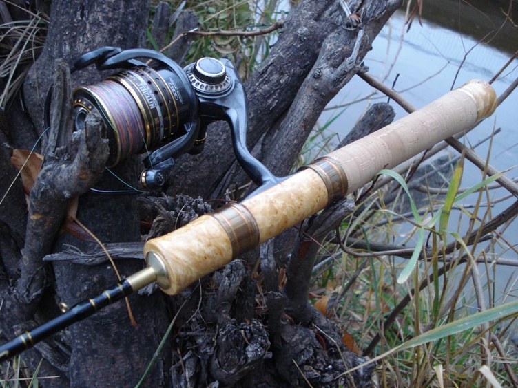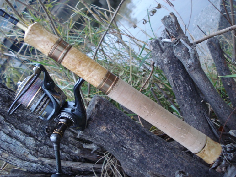 Этим летом довелось побывать на рыбалке в северных широтах . Красивейшая природа , гостеприимные люди .... и новые трофеи в моем послужном списке - радужная форель и хариус . Принимающая сторона обеспечила хлеб-соль , снасти , приманки и прочее . Во временное пользование мне были выданы два японских форелевых спиннинга . И все .....я влюбился с первого взгляда и с первого заброса в концепцию форелевого удилища . И стала передо мной задача собрать себе комплект из двух спиннингов - Area ( для ловли прудовой форели ) и Stream ( для ловли форели на течении ) . После долгих и упорных поисков за основу первого был выбран форелевый бланк компании Justace ростом 6 футов и тестом до 5 грм . И за основу стримового удилища был выбран двухчастный нахлыстовый бланк 3-го класса от новозеландской компании CTS ростом 6 и 6 футов . Пришлось самому изготавливать катушкодержатели , так-как имеющиеся в продаже не устраивали своей убогостью . На Justace катушкодержатель , грип гайки и бат изготовлены из капа березы , кольца FUJI t-atsg sic . Вес спиннинга получился 86 грм . На CTS установлены катушкодержатель и бат из благородного дерева Венге . Кольца новомодные Fuji Torzite . Вес спиннинга получился 98 грм .