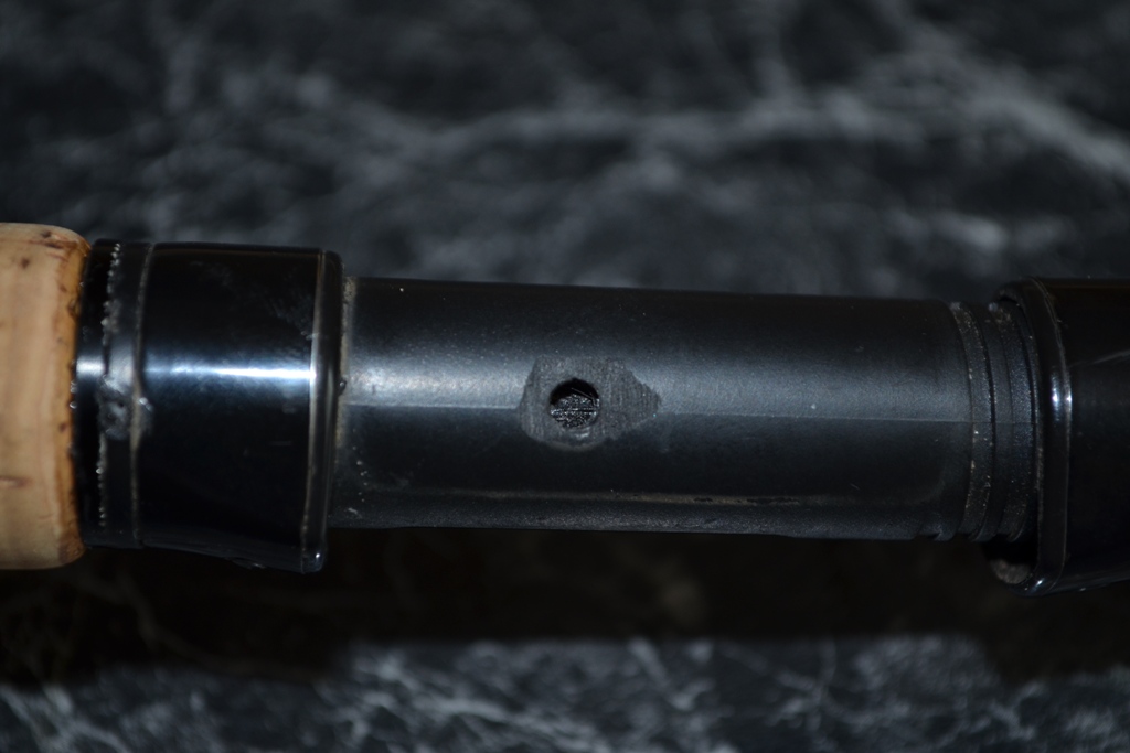 Благодаря помощи главного напарника, стоявший пару лет без дела Favorite Expert 2.2 м. тест 1-6 гр. обрел новую жизнь уже в качестве 4 секционного travel. По крайней мере, после того как сын сломал пополам вершинку, думал сделать пару дополнительных шпиготных соединений, и на этом закончить процесс. Однако, затем решил все же довести эту палку до ума окончательно. В процессе переделки убрал примерно 1 см. резьбы катушкодержателя, мне это запас показался лишним, в мусорку пошла и металлическая заглушка с резьбы. Поскольку сам катушкодержатель от времени и бездействия пересох, и держался ветхо, немного шатаясь, усилил его небольшим количеством эбоксидки.