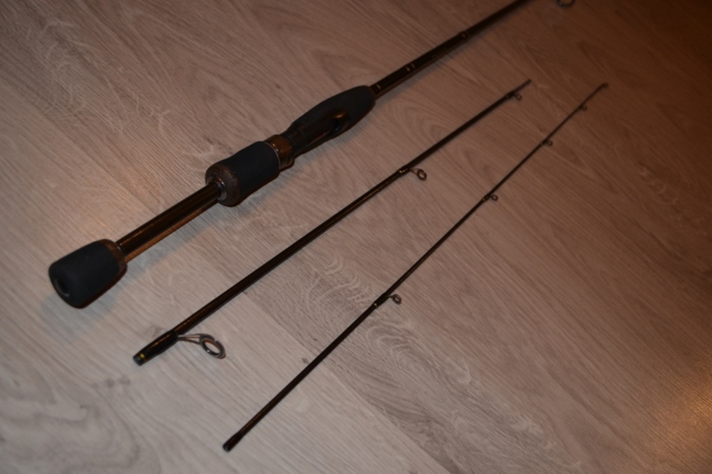 1,8 м. (5 секций, IM7). Естественно, выбирал не столько спиннинг, а скорее бланк. Родные внешние данные этой палки в стиле УАЗика, рабочая лошадка, но дизайн от лопаты. Хотя очень хороший быстрый строй, реальный тест от 1,5 до 8 грамм, и большой запас мощности. Даже сказал