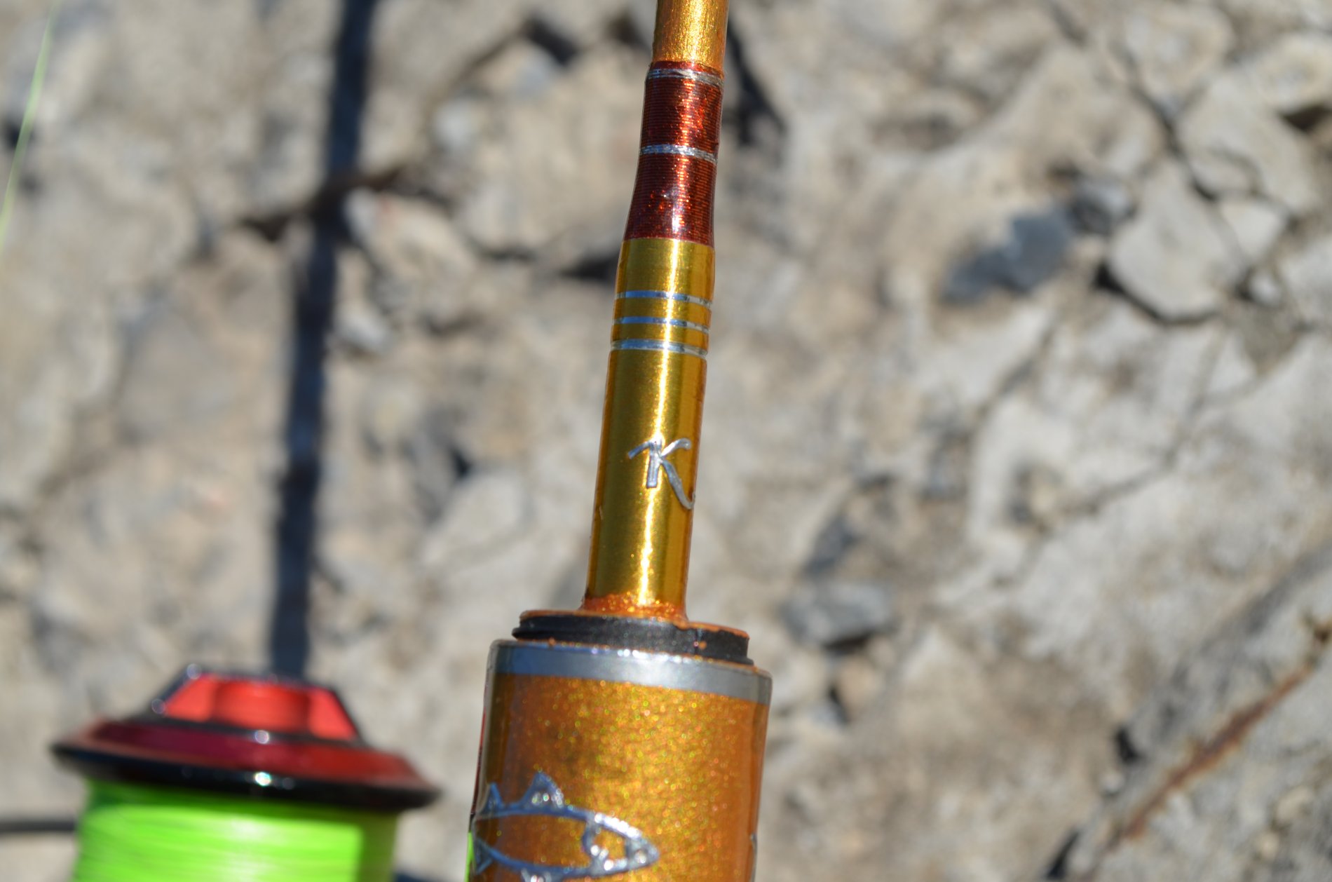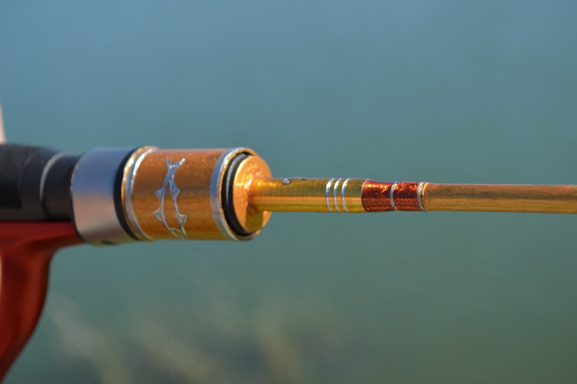 Также, решил убрать массивный форегрип, он же и был мощной гайкой катушкодержателя. Оформил в стиле гоняющихся друг за другом рыбок.