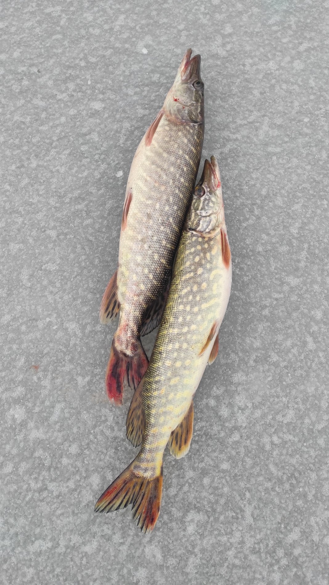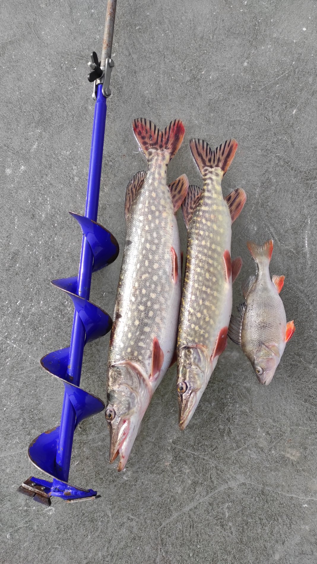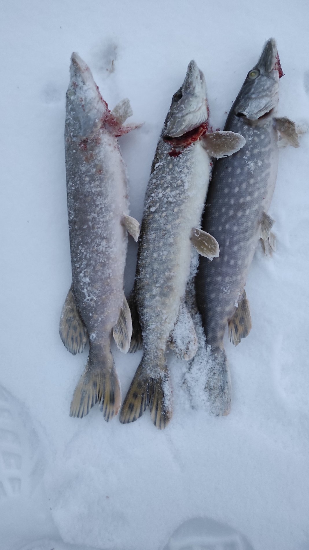 В общем, на жерлицы три сработки, одна щучька под килограмм, окунь и белая вообще в игноре.
