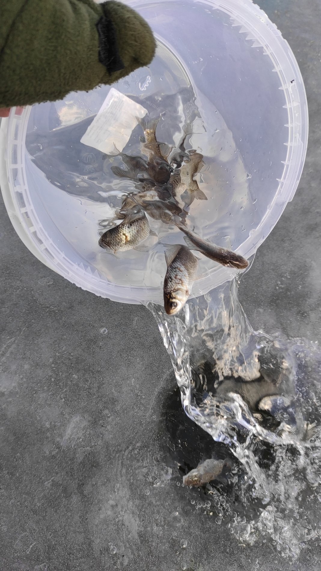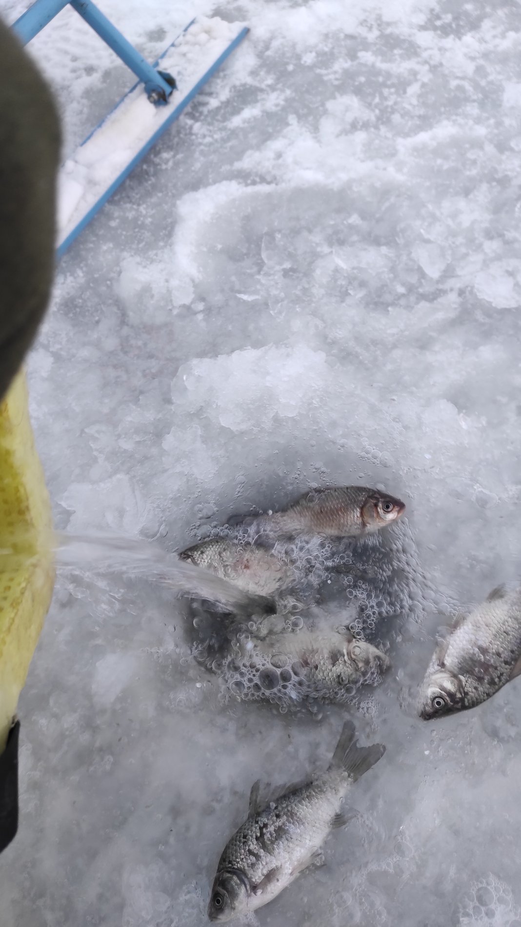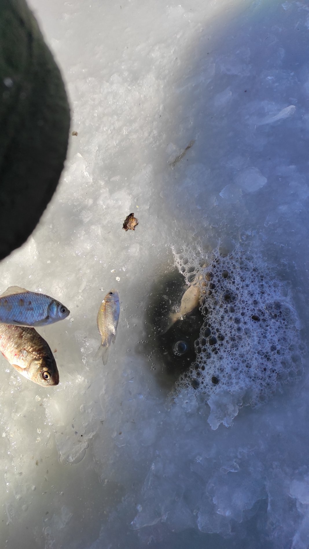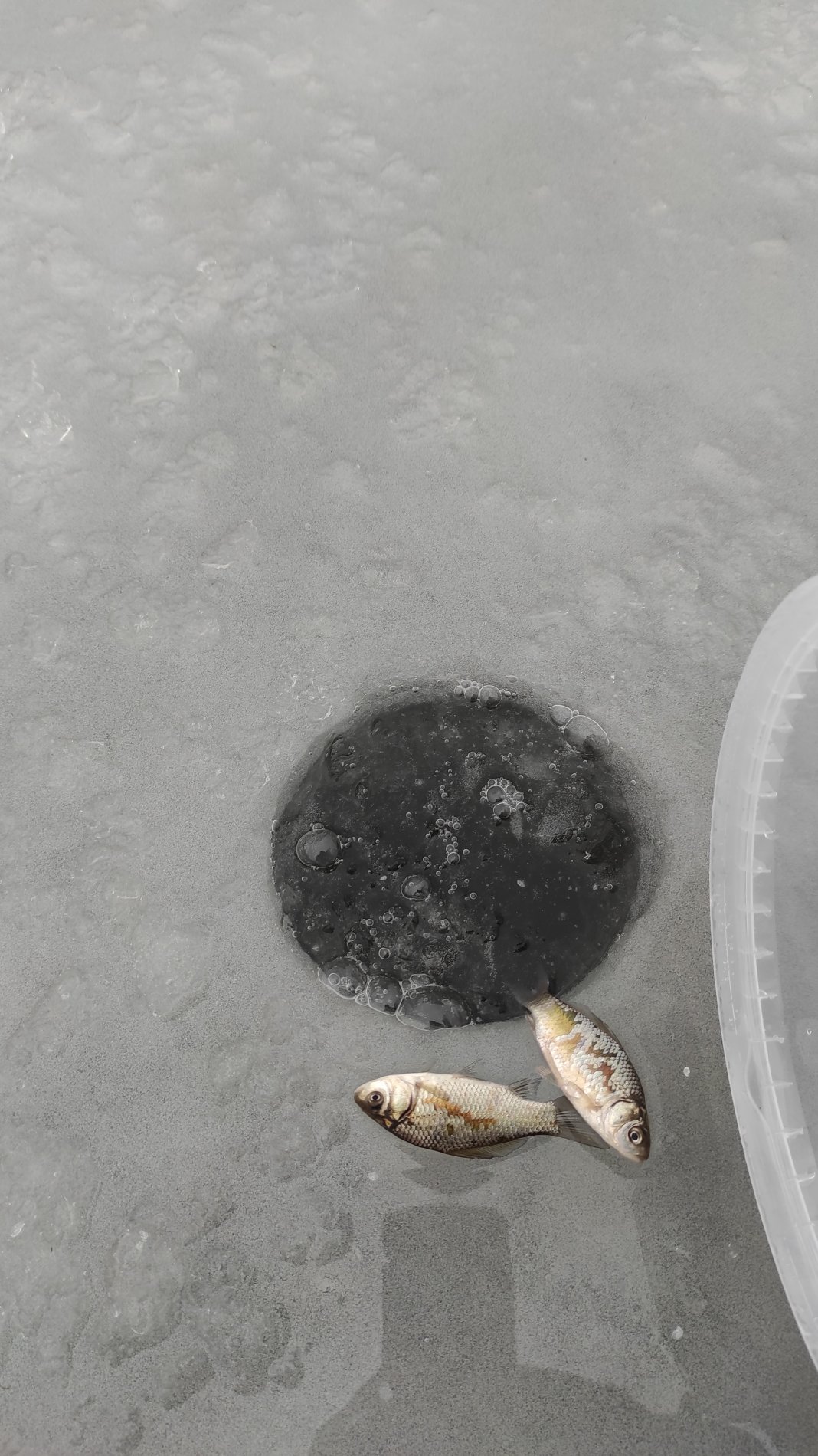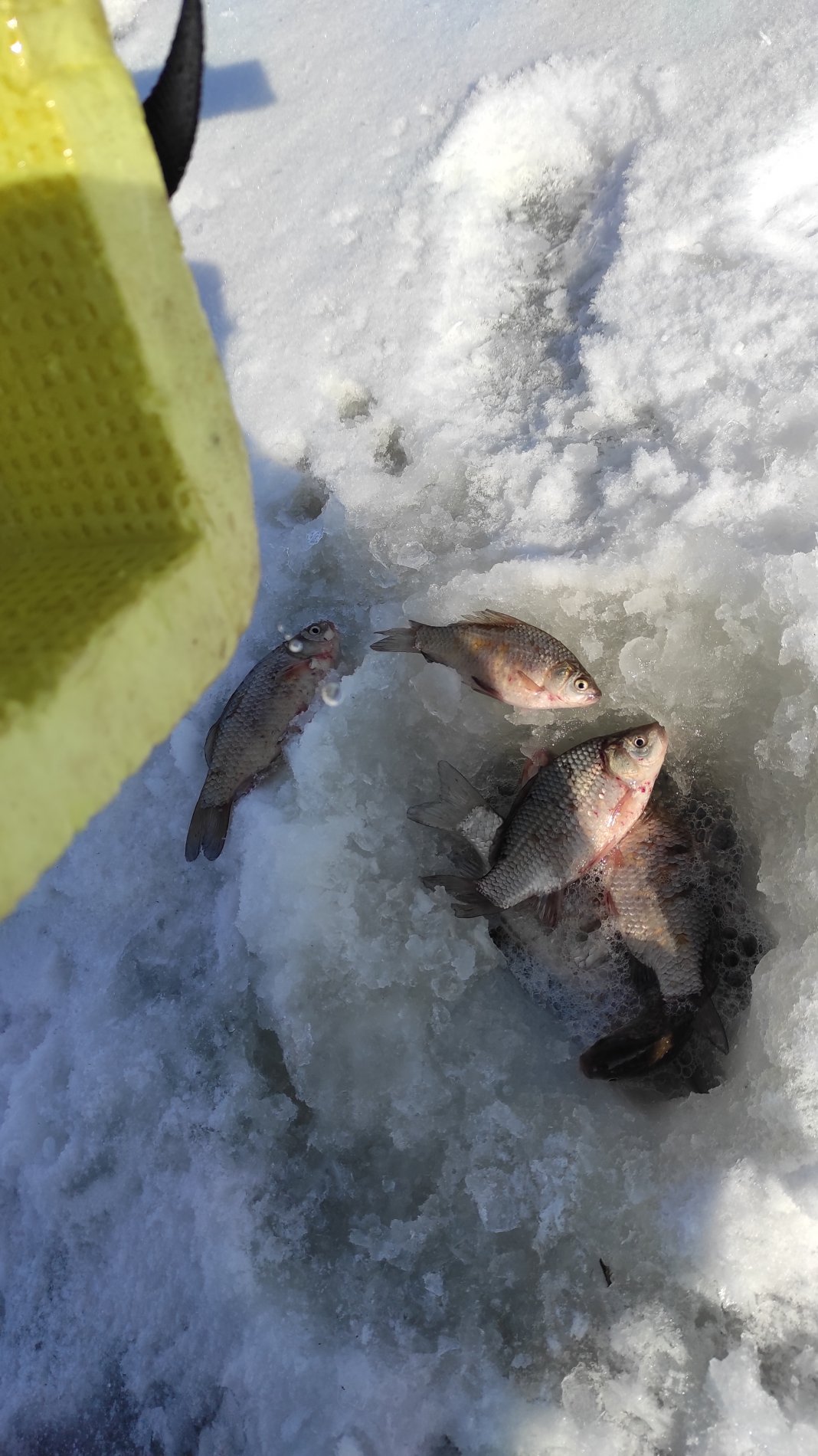 Время проведено с пользой, свежий воздух, выпущено до 20 карасиков, в Суру. Лёд до 17см.