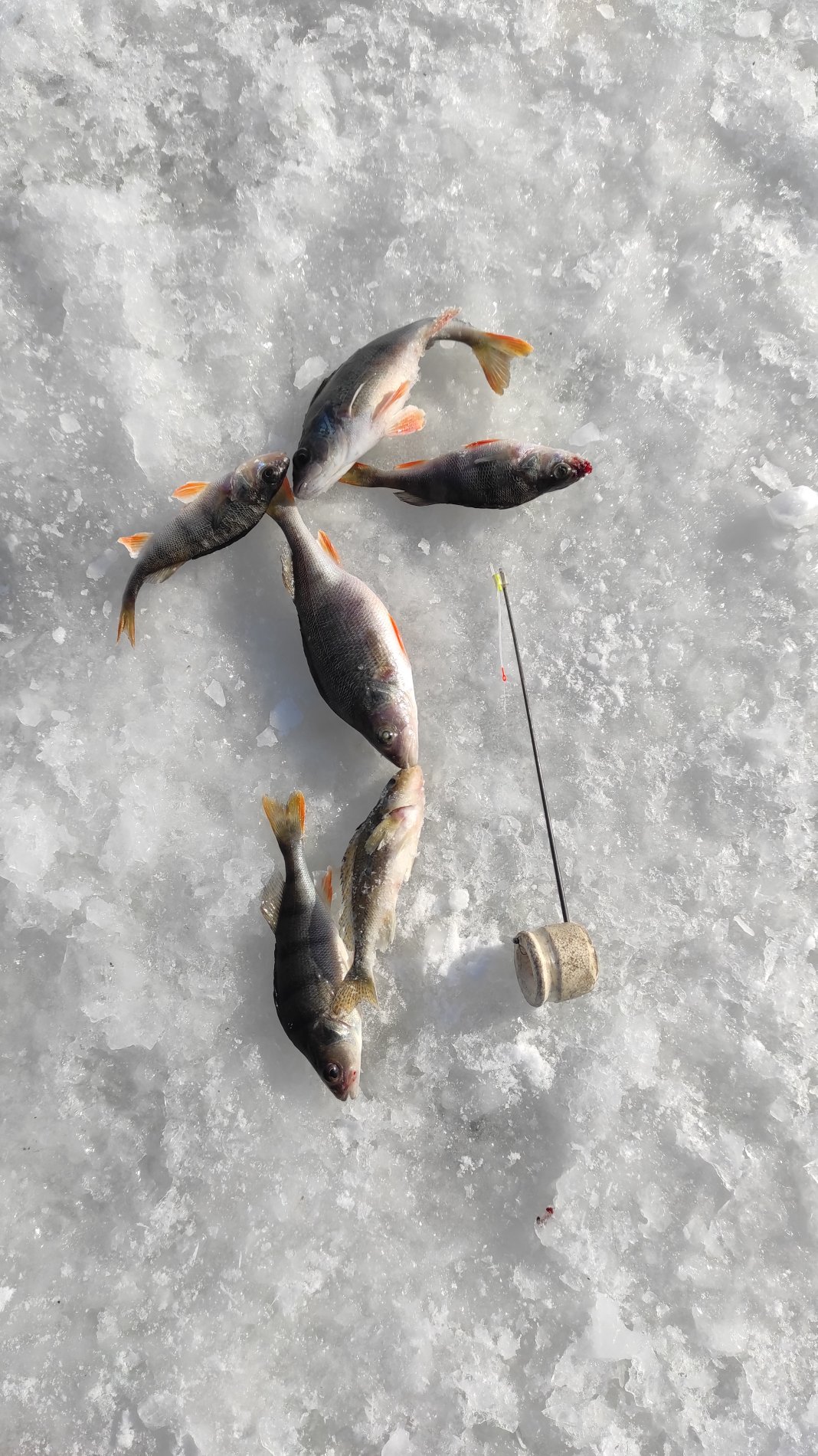 На жерлицы четыре подъёма, один сход по ощущениям за килограмм. На мотыля с пяток мелкого окуня, который сразу топился.