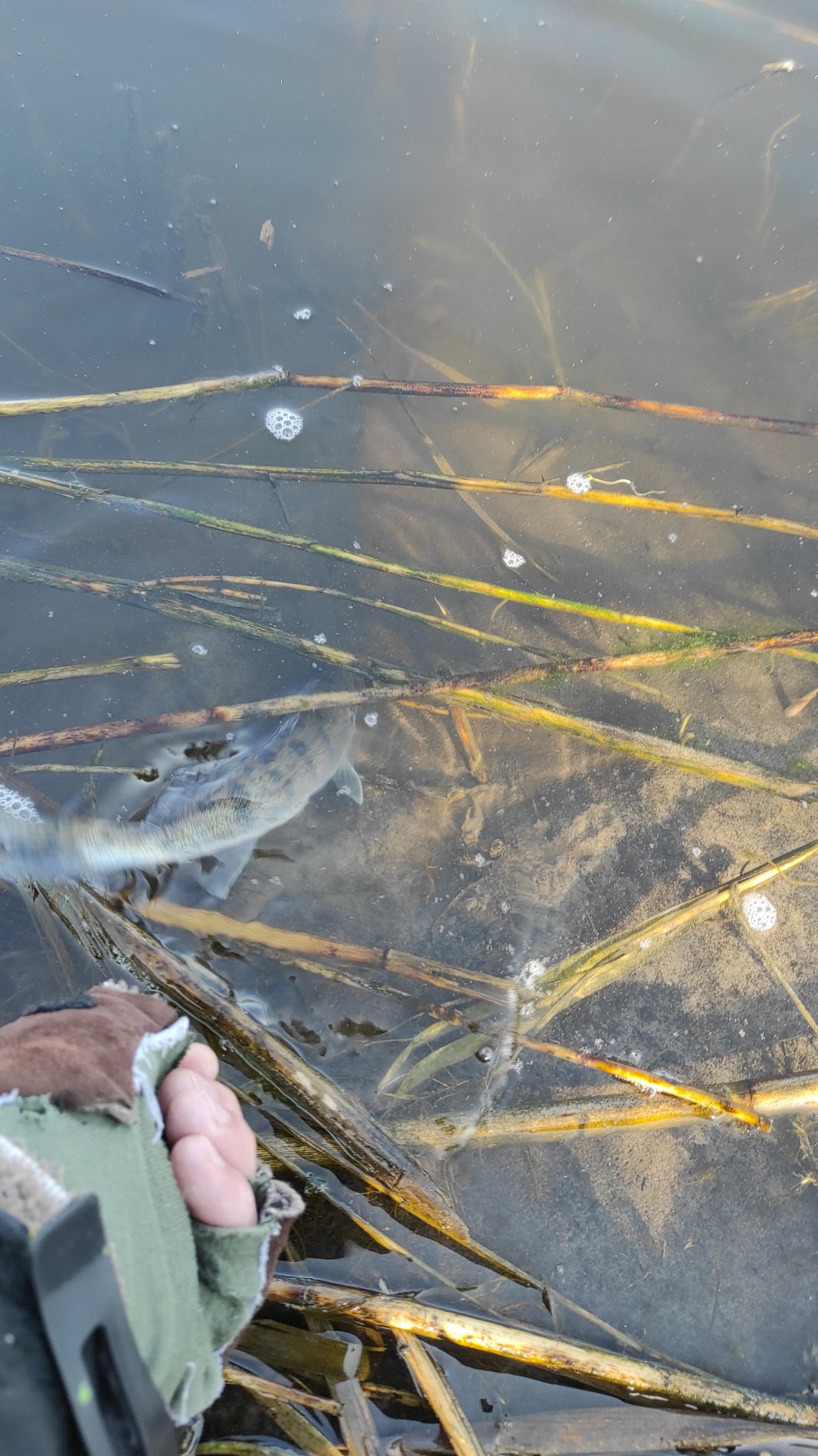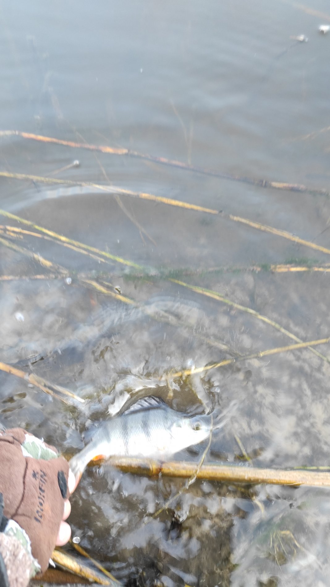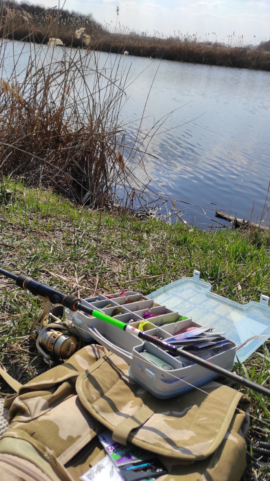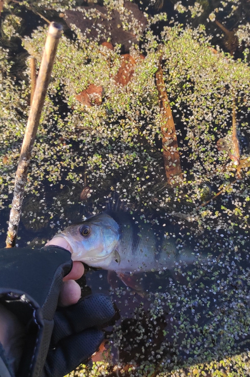 Проскочил на прошлогодние точки, заработал две поклёвки и обе результативные, но судачки уж очень мелкие, сразу утоплены.