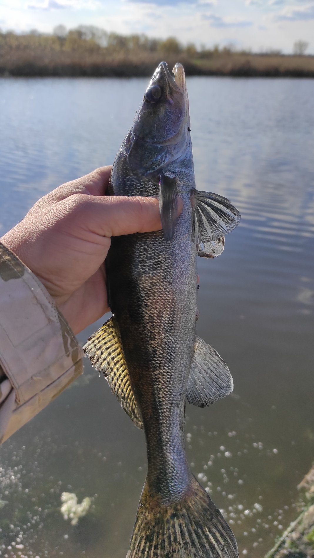 Судачек проснулся, заработал три поклёвки, две реализовал. Но судак мелкий, а один вообще широтного размера, взяли жадно в пасть. Оба утоплены.