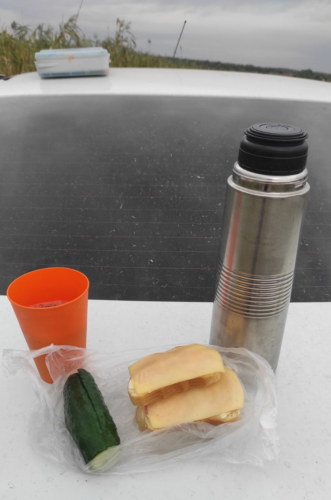 Опять, первые поклёвки с восходом солнышка. Первая села щука где-то за килограмм (едет в Днепр, на сковородку).