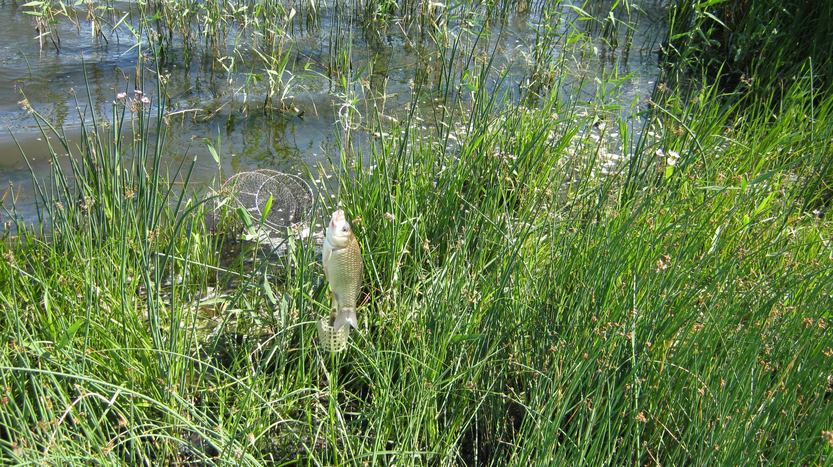 Прошедшие выходные снова в Бобринецком районе. Вода на любимых прудах упала очень сильно – до 1,5 метров. На небольшом пруду, на берегу много погибшего малька. Жара дает о себе знать. Ловили на фидера с боковым кивком, на большом пруду. У мня снасточка «комбайн», у внучки – ассиметричная петля, у племянника In-Line с кормушкой-пружиной:1072:. Объект ловли – карась. В прилове мелкая красноперка. На моей снасточке и снасточке внучки дополнительные поводки из мягкого поводочного материала с мелкими крючками под пенопласт. На основном поводке очень понравившиеся мне крючки под червя Owner Worm SP-BH 53118, 12 номера. Наживка красный червь и пенопласт с запахом «тутти-фрутти». Карась начал клев как по расписанию с 7-00 и до 10. Вечерний клев, с 17-10 и до 19-30 был намного интенсивнее утреннего. Во время утренней рыбалки за нами наблюдали «хозяева» пруда, два прекрасных лебедя. Конец рыбалки был немного испорчен. Внучка перешедшая на новое место ловли, зацепила сеть:(, простоявшая судя по находившейся в ней дохлой рыбе, долгое время и забытая браками. Сеть естественно была уничтожена. Дневную норму вылова рыбы выполнили все:). Удовольствия от рыбалки также получено всеми.:ura: