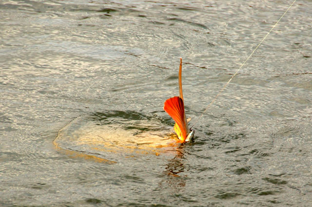 Похожая ситуация, только не чайка, а нырок, и не в воздухе, а в воде, и не ротом, а за крыло. Главное, когда бросал (ещё бросок получился ооочень дальний, с пирса), блесна летит, а я смотрю на плещущихся в далеке нырков и думаю :сволочь, точно ща забагрю. Нырок уходит под воду, в это время блесна подает метрах в трех за ним и тут же следует рывок такой силы! Главное, утка дикая, пока он под водой - ещё можно тянуть, хоть и с большим трудом. Но как только выныривает на поверхность - караул! Минут после пятнадцати мучений все-таки сошёл, чему я несказанно обрадовался. Ибо тяну и думаю: ну, хорошо, я его подтяну к пирсу, а дальше как? Не подсаком же его брать, в конце концов. PS Кстати, блесна - Mepps Циклоп №2 - однако уловистая!