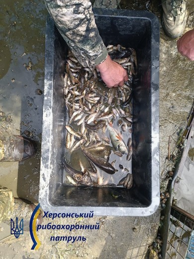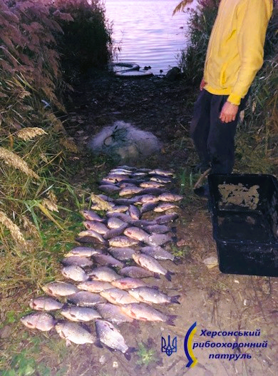 Трохи згодом, на цій же акваторії був затриманий громадянин, який здійснював вилов водних біоресурсів забороненим знаряддям лову - мисиновою сіткою з берега. Порушник в результаті незаконних дій впіймав 16 екз. сазана, 15 екз. карася сріблястого, по 3 екз. судака та сома, 2 екз. ляща, по 1 екз. плоскирки та окуня, завдавши збитки рибному господарству у сумі 462 377 грн.