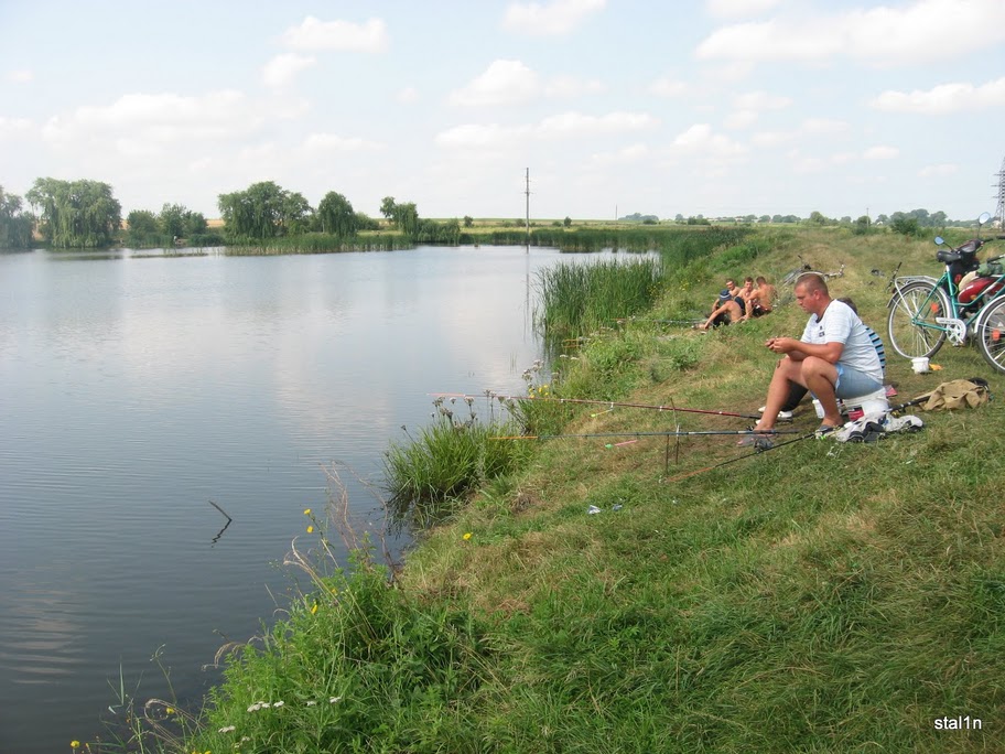 два слова про місце лову: при в'їзді в Корець біля біля посту ДАІ повертаємо наліво, їдемо десь до кілометра паршивенькою дорогою до величезного бетонного напису "КОРЕЦЬ" і відразу біля нього повертаємо наліво. метрів 500-600 і ви біля ставка. а тепер сам звіт: Компаньйони: Ярослав Пограничний, Олексій Федоришин Погода: день виявився дуже гарячим, небо безхмарним, вітру майже не було, тиск стабільний 980гПа Час ловлі: з 05:00 до 11:30 Місце: північно-західна частина ставу, на невеликому обривчику. Зловлено: 25 карасів, 1 маленький дзеркальний карпик. Наживка: опариші(хоча пробували на все, але клювало лише на опариші). Прикормка: власного виробництва з додаванням консервованої кукурудзи. В прикормку налив ароматизатор FishDream "Big Fish" Снасті: фідер, метод, вудка, спутнік. Начитавшись інформації в Інтернеті я вирішив спробувати порибалити на новому для себе місці, на ставку поблизу міста Корець. Колега на роботі теж туди їздив у минулі вихідні, і сказав, що рибалка не погана. Отже, підйом в 02:45, швиденько пакуємося і в дорогу. Дорога не близька, не менше години їзди. Їхали в суцільній темряві, як прибули на місце то почало вже сіріти. На КПП нас зустрів власник ставу Микола Захарович, сказав, що вчора клювало добре. Оскільки ми тут вперше і місці зовсім не знали, то обрали для риболовлі місце повністю вільне від дерев та кущів. Там був лише мінус в тому, що до води потрібно було спускатись з метрового обривчика. Тому підсачувати рибу було проблематично. Я швиденько замісив прикормки, розклав фідерочка і закинув з десяток кормушок в одну точку, в метрах 50 від берега. Також закормив місце зовсім під берегом для поплавчанки. Першого карася(на вигляд грам 150-200) я не зміг взяти, бо полінився взяти підсак. І він зірвався при спробі підняти його на обривчик з води. Далі я брав карасів лише підсаком, а оцей перший виявився найбільшим карасем за всю рибалку. Риба клювала дуже специфічно, я вже й відвик від таких ніжних покльовок. Кінчик майже ніколи не загинався сильно, лише потяжки по сантиметрів 10-15, а вірнякові покльовки було у переважній більшості в берег! Це було звичайно погано, бо я не завжди міг засікти рибку. Я закинув всі свої снасті, поставивши всі можливі насадки. Клювало лише на опаришів, правда було декілька подьоргувань кукурудзи, але то навіть покльовкою важко назвати. Під берегом на вудку якась мілюзга(думаю, що це синька) постійно тягала хробака. Набагато пізніше(десь о десятій тридцять) я на цю вудку під берегом на кукурудзу впіймав маленького дзеркального карпика. Олексій погано налаштував фрикціон на своєму фідері, при черговій покльовці ми всі перелякались, що він тягне щось пристойне. Я навіть відео зняв: У людей по ставку(переважна більшість - місцеві жителі) взагалі кльов був дуже і дуже поганий. Один чоловік сказав, що тут клює часом набагато краще. Приблизно о дев'ятій ранку у мене сталась покльовка на фідер(наживка три опариші): кінчик трішки потягнуло до води, сантиметрів на 2. Через три секунди ще на 3 сантиметри. І потім ще більше потягнуло, і знову зупинилось в такому положенні. Я такого раніше мабуть і не бачив ніколи, як завжди плавно зробив підсічку. О Боже! Яку ж важкість я відчув, здавалось, що на тому кінці шнура знаходиться якийсь запорожець . Я помаленьку почав його тягнути з води методом виважування: піднімав фідер прямо догори, а потім виби