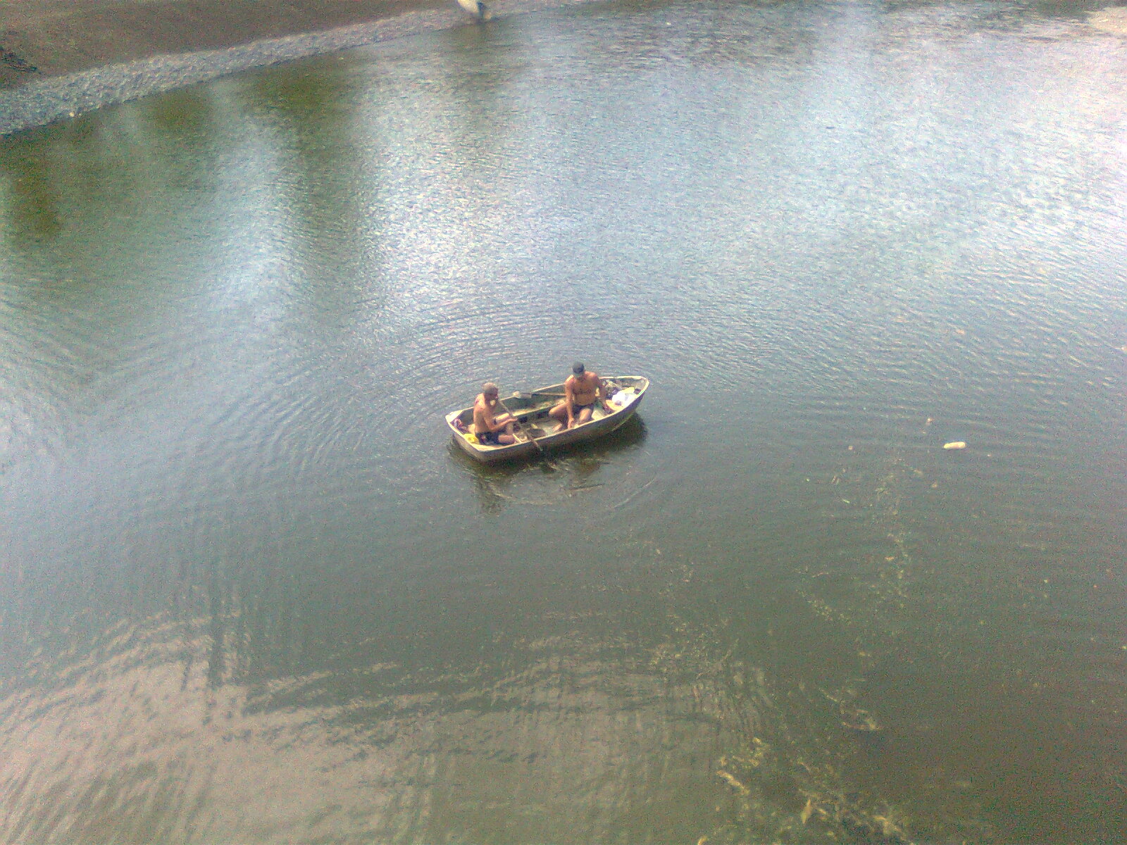 Харитонова,вид с моста, только пустили воду после реконструкции 21.08,"рыболовы" уже тут как тут, наверное строители , бо гребут лопатами...было бы лучше видно -можно было бы рассмотреть , что сыпят китайку