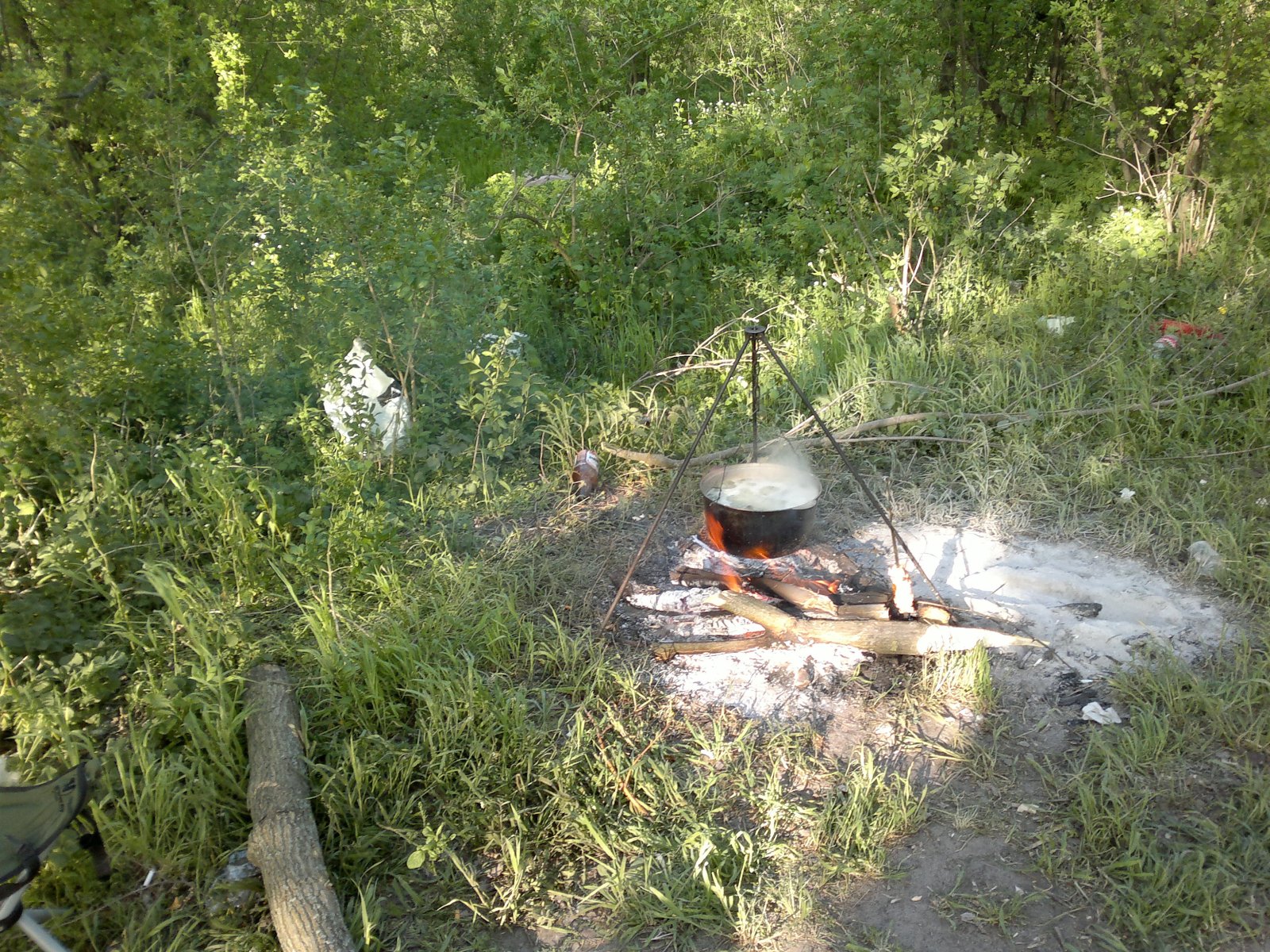 Вчера выезжали в здешние места пожарить шашлычок. Для того чтобы занять хорошее местечко приехали со свояком около 7:00 прихватив с собой фидер, сильных усилий для ловли рыб не прилагали и поэтому остались без улова. Чего не скажу об одном браке. который с завидным постоянством вытягивал карасиков на "паук". Еще было 5 рыбацюг пытающихся поймать голавля как на противоположном так и на нашем берегу, походу успехи у них были не намного лутше наших. Уровень воды по прежнему высок, и течение сильное.