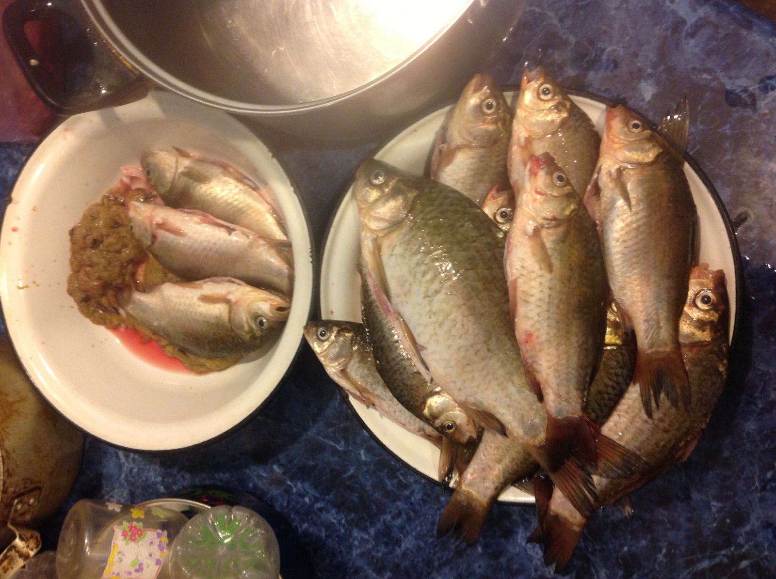 26.04. забрал жену в 19.00 с работы, и двинул на рыбалку. Цель: вырватся из города на природу.Вечером, птички поют, рыбка плещется красота-ляпота. С вечера 2-тарашки , 2-крастопёрки, иштуки 3-4 карасика.27.04 С утра ели она же подняла, карасик грамм 500 и один лодошечный, (ето у меня) . У жеты поклёвок много и много рыбы ( посравнению со мной). Поднял садок прикинул хватит.В дома взвесил 3 кг. 200 гр.Не считая ужына. Клёв переменный,больше не клюёт чем клюёт.