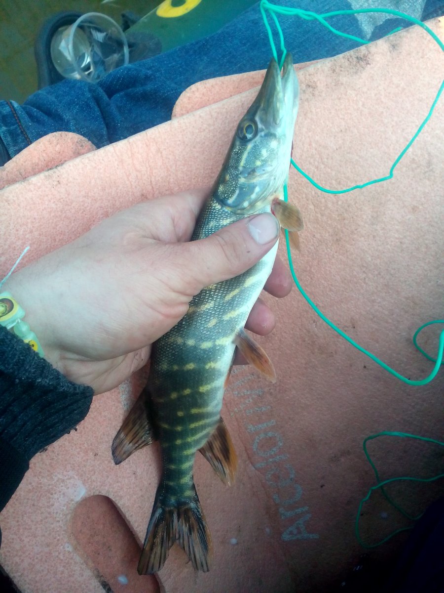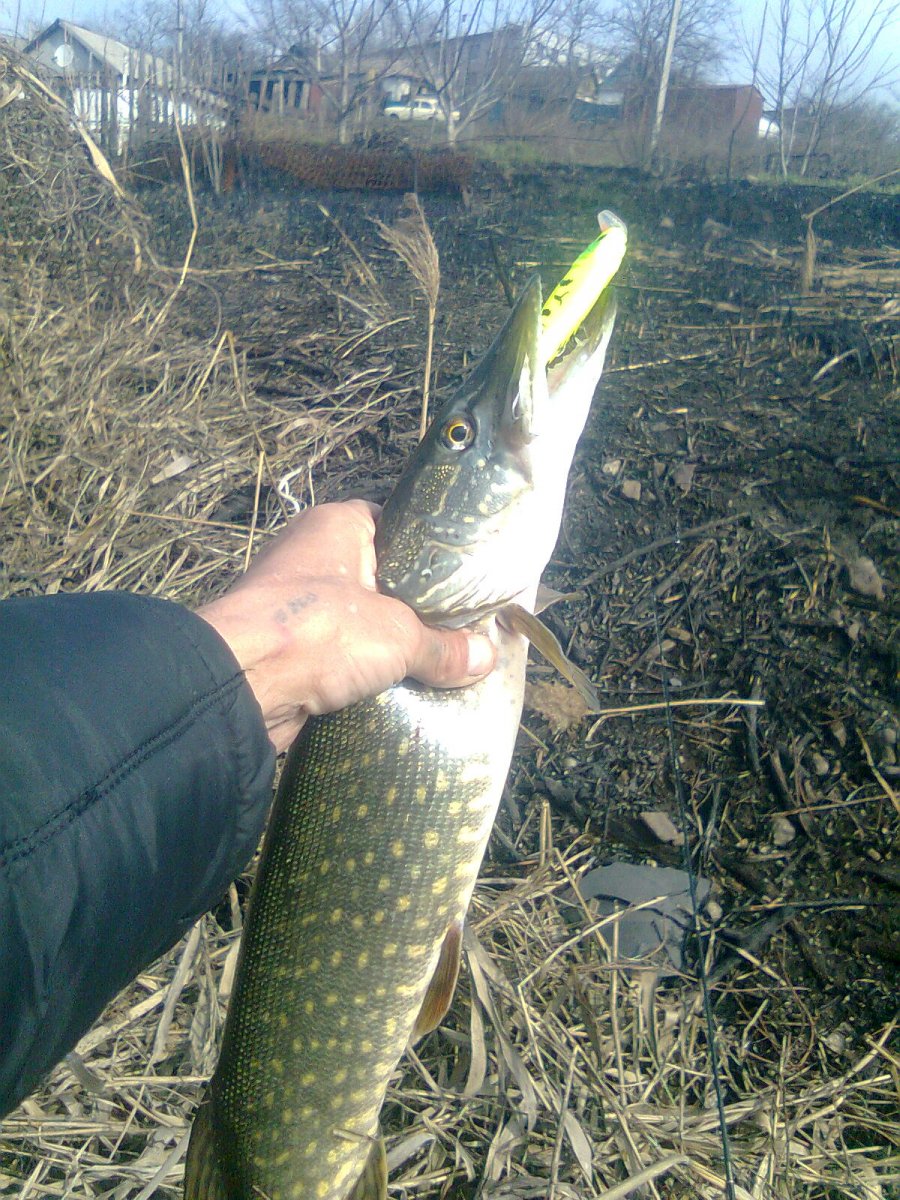 Как бы не казалось странным, но мы с другом сегодня тоже были на ЮГОКе:ura: На месте были около 7.00. Плавали на лодке от жд моста и до понтонного моста. Примерно после 10 заброса на крючке уже был маленький щупачек, но как только я подвел его к лодке он сошел((( обидно но ладно... Примерно через 30 мин опять удар, подсечка и на крючке уже новый щупачек))) этот уже оказался у меня в руках. Спустя час попался еще один))) Все щупачки были пойманы на недавно купленный воблерок strike pro inquisitor 110 sp. (в соотношении цена/качество данный воблер меня очень порадовал ) Также был один сход на желтый силикон(( Все щупачки были выпущены... так как крупного щукозавра словить не удалось то и домой уехали ни с чем, хотя в камышах нашли самодельную блесну - тоже трофей + помогли мужичку отцепить воблер который застрял на средине русла. Отдыхом доволен, погодка не подвела)))