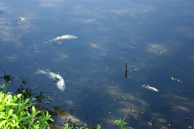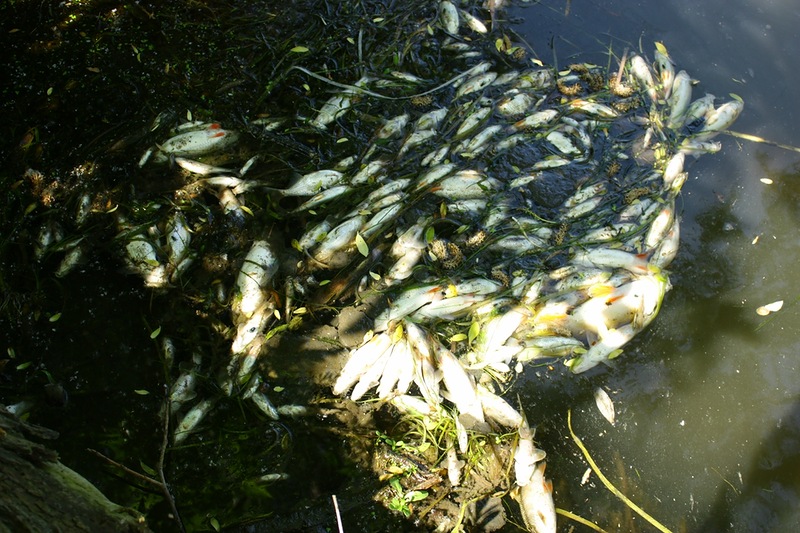 На этих отшнурованных участках происходит поистине эко трагедия. Уровень кислорода в воде упал далеко за критическую отметку. Рыба умирает...