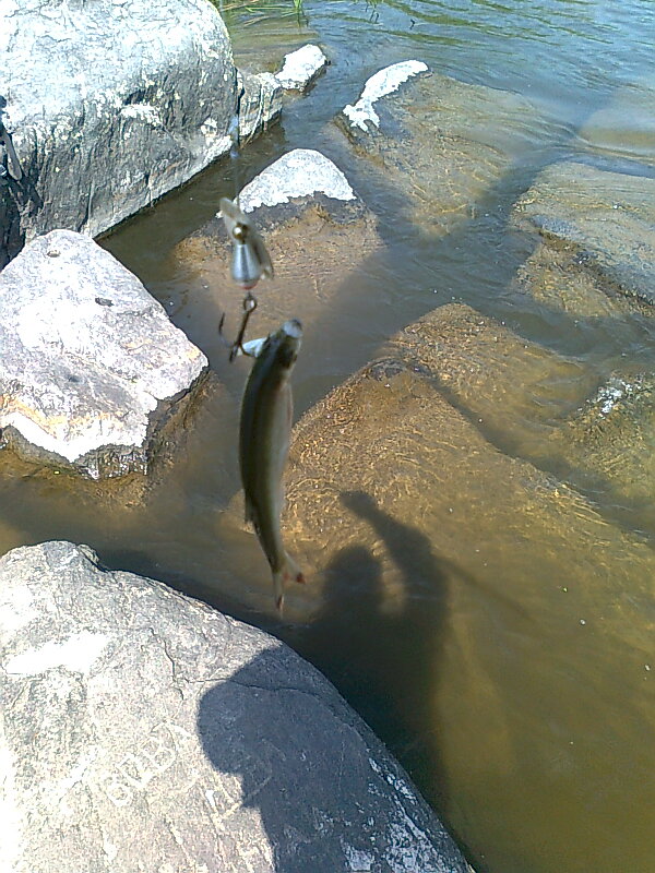 Что-то "поперло" мне на "уловы" Вчера в поисках щуки,воблер jackall magallon: Сегодня утром,в попытках освоить ловлю головля. Блесна Mepps Black fury№1: