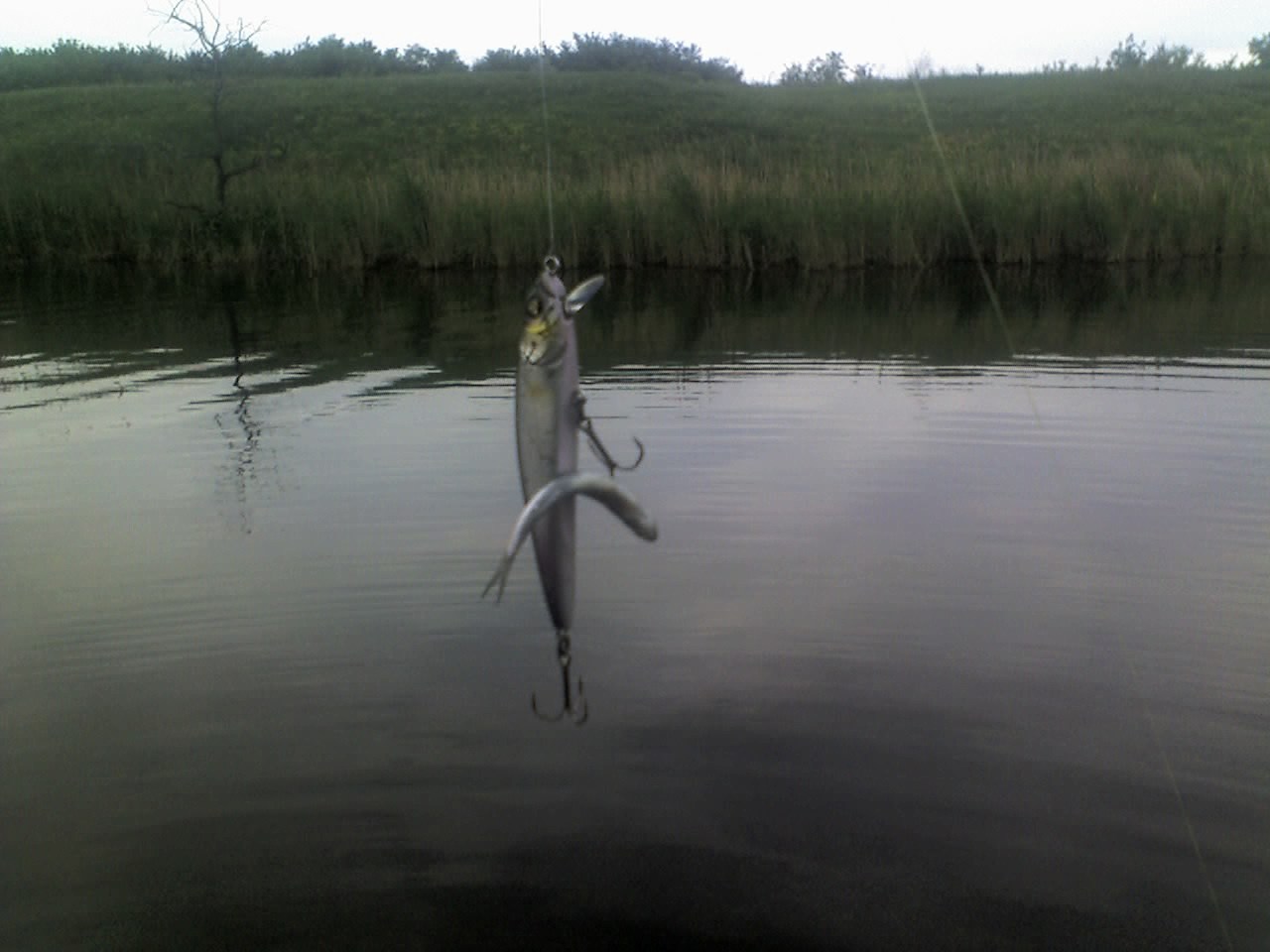 На одном из выездов мой напарник поймал джигой .... собственную жену (они были вдвоем в лодке). Причём клюнула по всем правилам - за верхнюю губу.:applodesments: