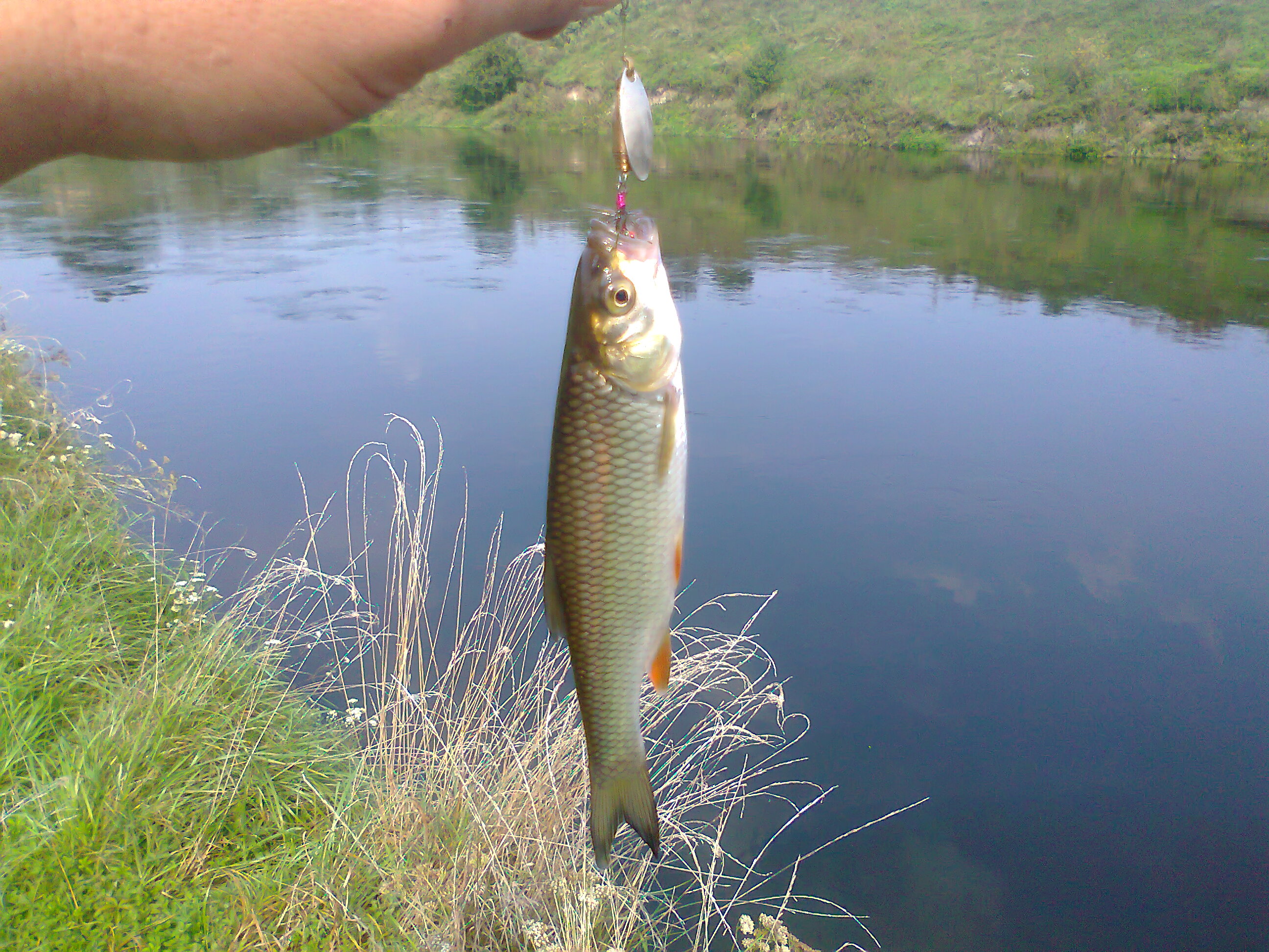 Сегодня на кукурудзу клюнул вот такой антитрофей. Давно такой мелочи не ловил. Даже точно не знаю как называется. Помоему, читал когдато на форуме, - синька - чебачек, если не ошибаюсь.