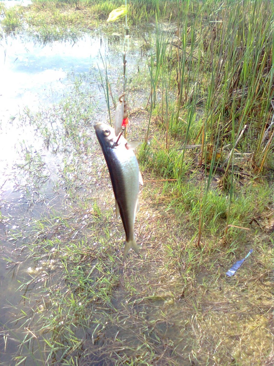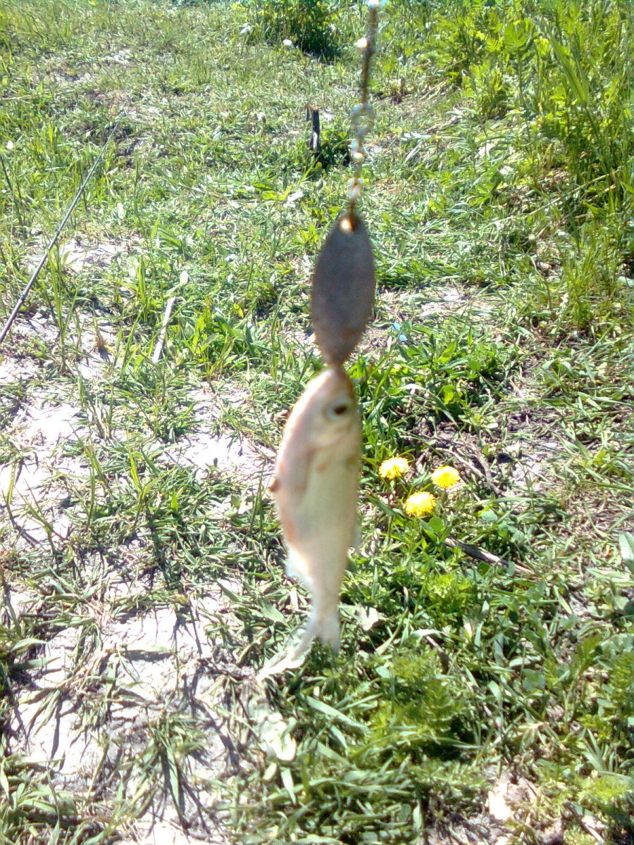 Осваиваю фидер. Он такой чувствительный, что, когда тащила тюльку поперёк, орала, чтоб несли подсак. Мужики чуть не уписялись, когда увидели мой "трофей".