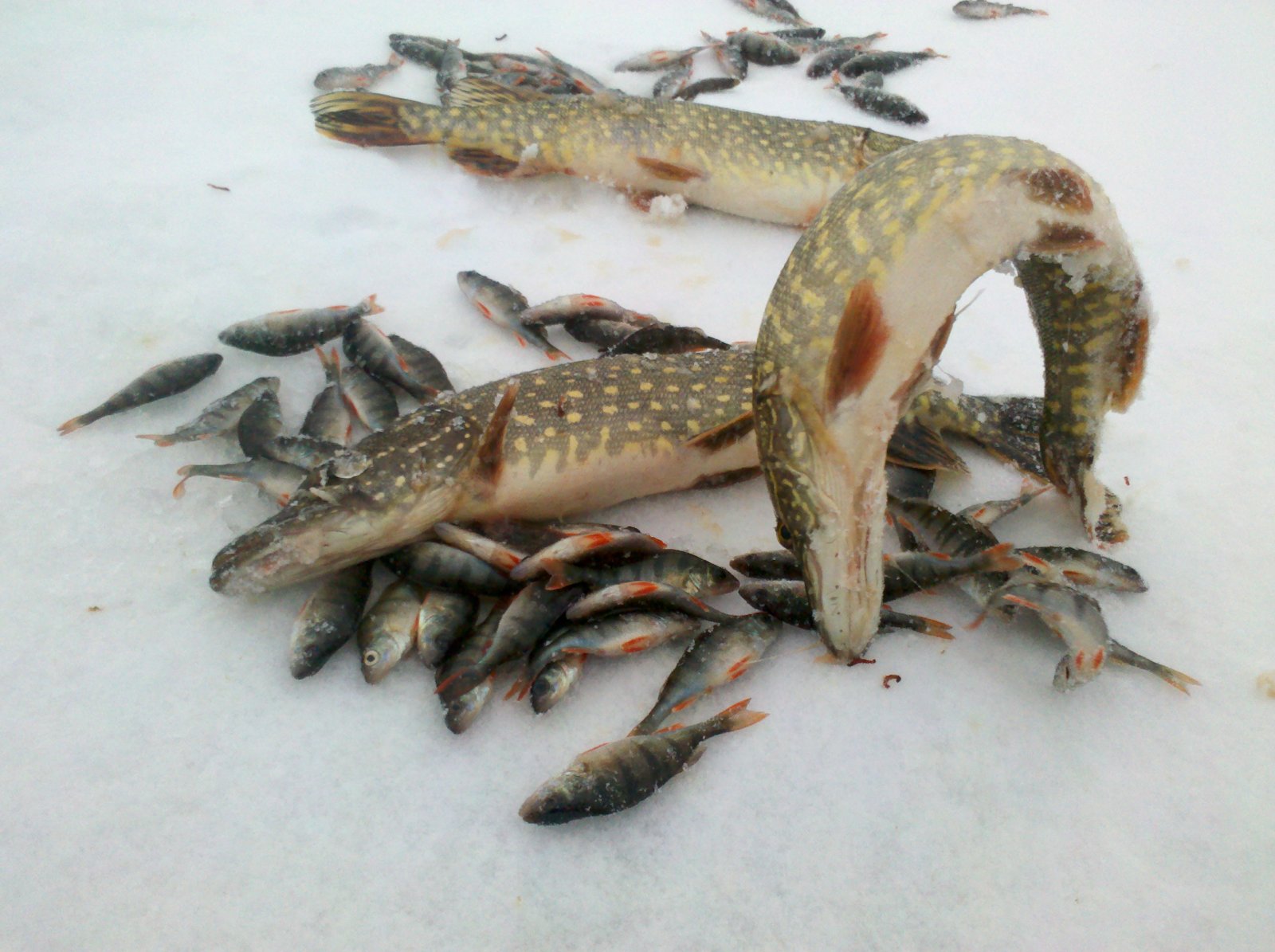 окунь клевал гдето 11 см росту и несколько 15см монстров попалось, тех что раньше попадались я не видел, хотя рыбачил на своих старых лунках. Второй год пошел как рыба на Макартах закончилась.....