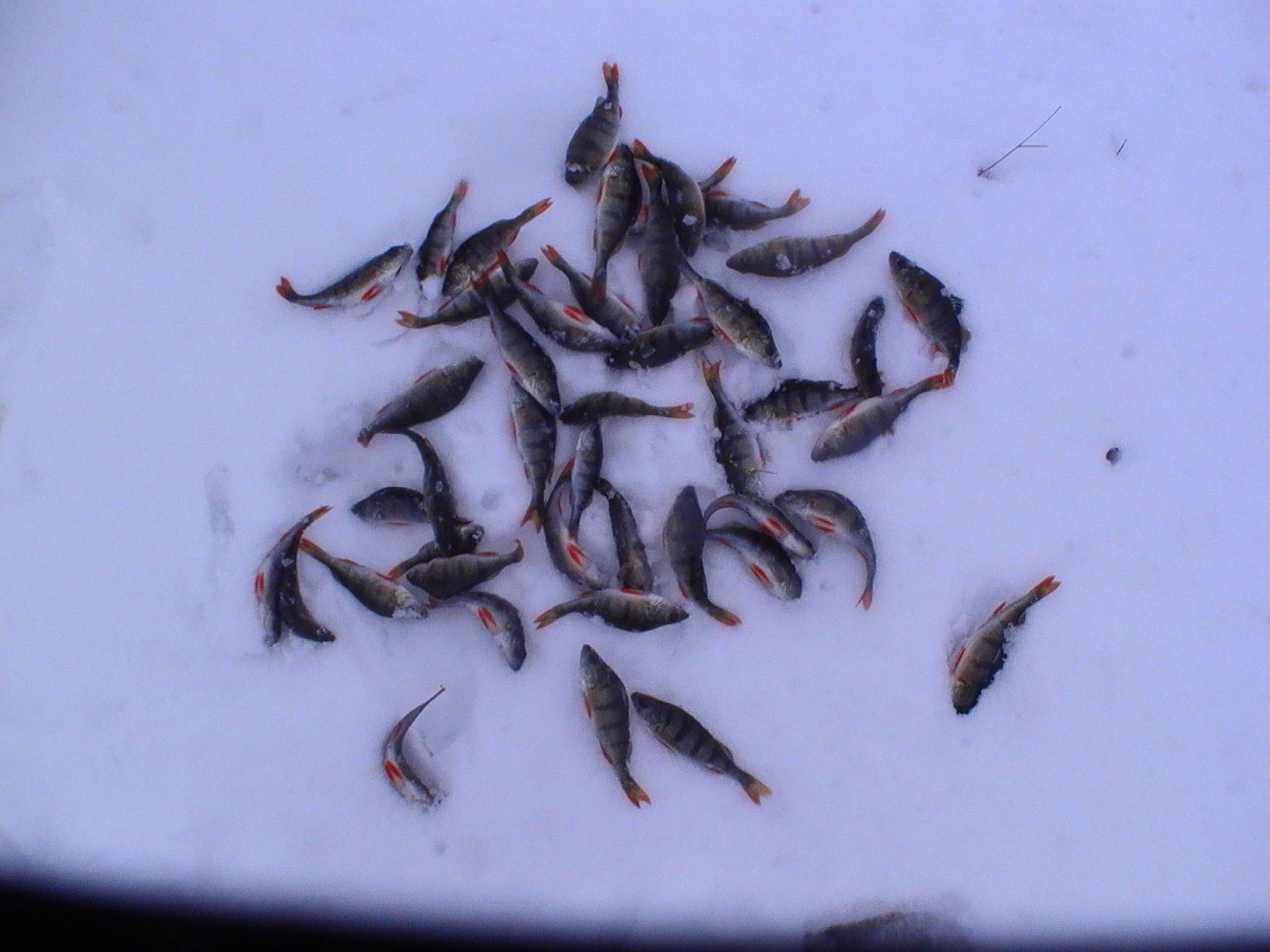 Сегодня (21. 02. 2010) Был на рыбалке. Сначалао пошли на окуня - на глубину максимум 1.5-2 метра. Окуня пришлось искать, но на пятой пробуреной лунке видимо попал на стаю.Сначало ловил на мотыля, а потом надоело его цеплять и стал ловить на безмотыльную мормышку. Могу сказать окунь брал отлично на безмотылку, даже лутче чем на мотыля.Сверху у меня был привязан крючьок-на него я тоже не цыплял мотыля,и на него тоже клевало.Ближе к обеду пошли на беленькую.Поседели часа два.Только одна поклевка была у отца и все.Но те кто сидел и закармливал место с самого утра у тех клевали подлешики, не сильно большие. Еще могу сказать что на льду под снегом много воды.Утром заходили нормально,а под обед чучуть подтаяло и снегстал проваливаться.
