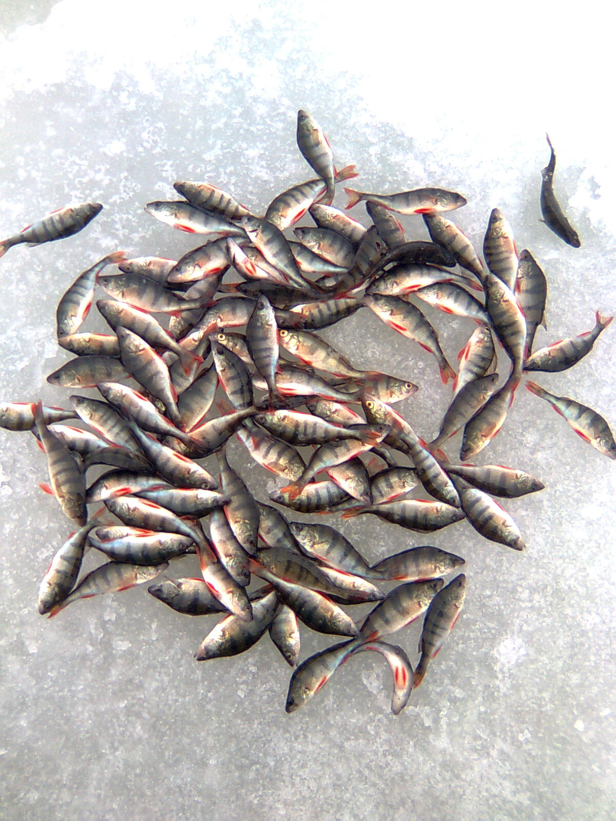 Окунь берет метров с 4-х и проскакивает таранька. Ну и с лунки 2-3шт так что клев стухает. Пора мостырить лодки и ждать схода льда ИМХО.