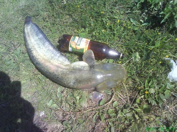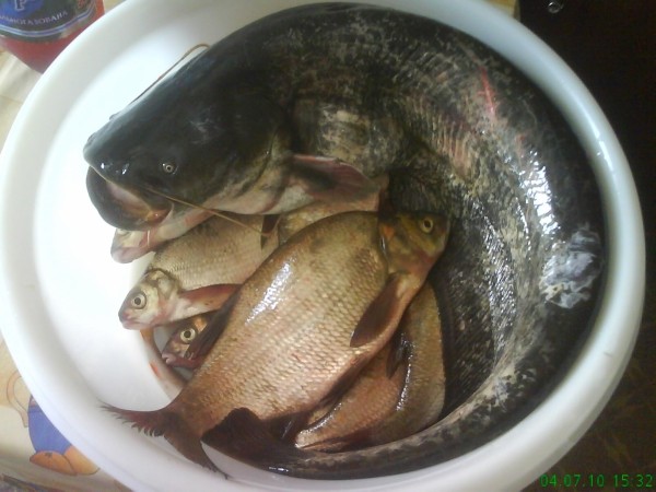 С 3 на 4.07 , были с Товарищами возле Новой Зари, выбор места обуславиливался возможностью выехать после дождя на авто.Народу было уйма, а ночью приехало еще немного, сидели почти плечо в плечо. Дождь, не испортил настроение и рыбалку, даже не пришлось прятаться от него, так и пили беленькую под открытым небом. Поклевки были редкими, а мы нетрезвыми. Приблизительно в 11 часов дня у Товарища, несмотря на дневную пору, водоем и наживку в 3 опарыша, клюнул СОМИК при взвешивании дома потянул на 3,8 кг. Народ разьехался к обеду, а мы остались до 18.00. Деньги так никто не приехал собирать. Поймали почти 9 кг. густеры и подлящика на 3-их.На фото моя часть рыбы в ведре.