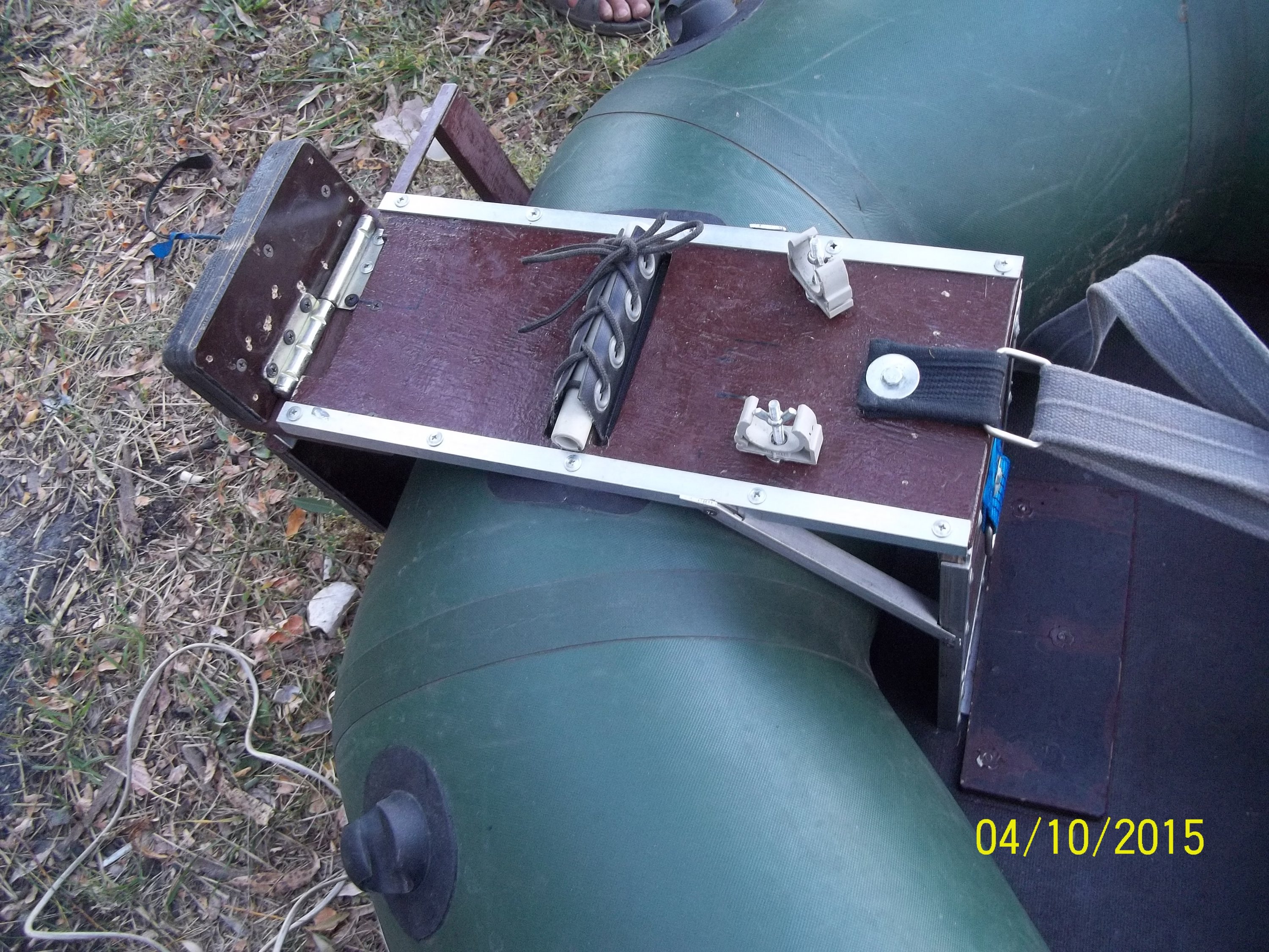 Пока я весь этот год ездил по рыбалкам, Толик посвящал свободное время неустанному усовершенствованию своего плавсредства. И, нужно заметить, достиг потрясающих успехов. Судите сами. Подвесной транец со превратился в удобный стол, на котором хватит места не только для бутылки, термоса и пары стаканов, но и для закуски!