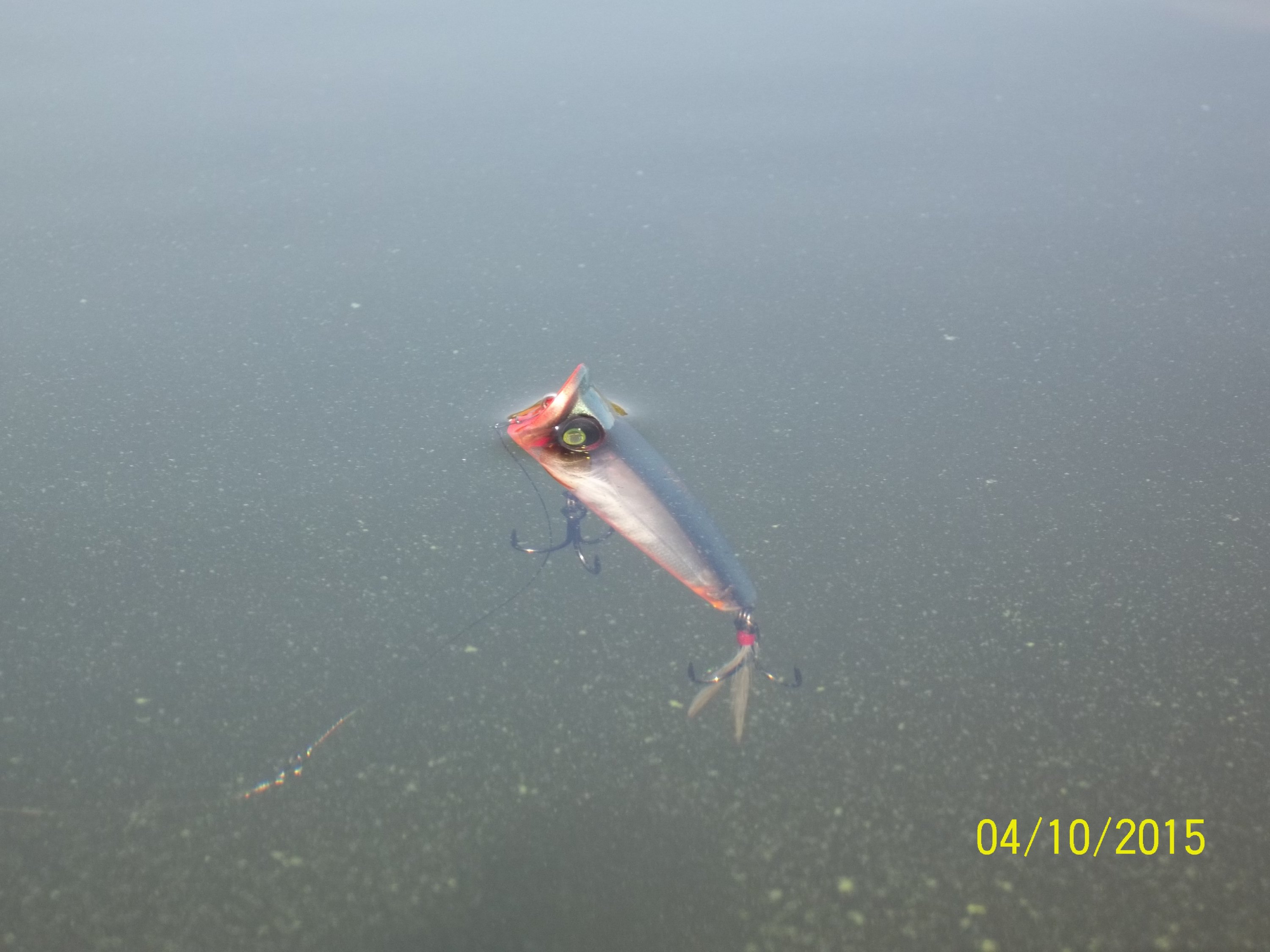 уже испытанным на прошлой рыбалке 3DS popper-ом. Первые два заброса я с восторгом наблюдал, как закипает поверхность около смачно булькающей приманки. А на третьем подсёк