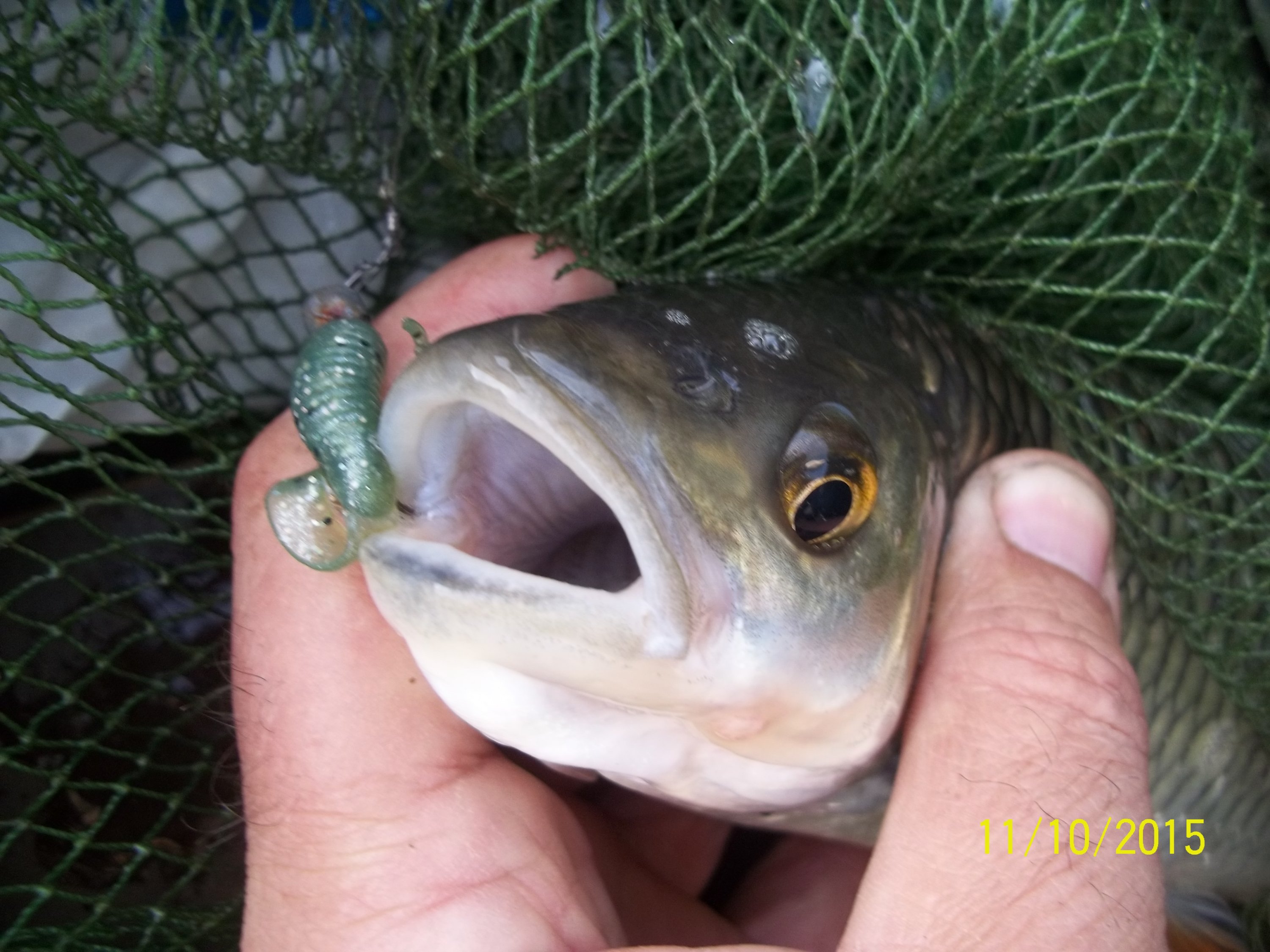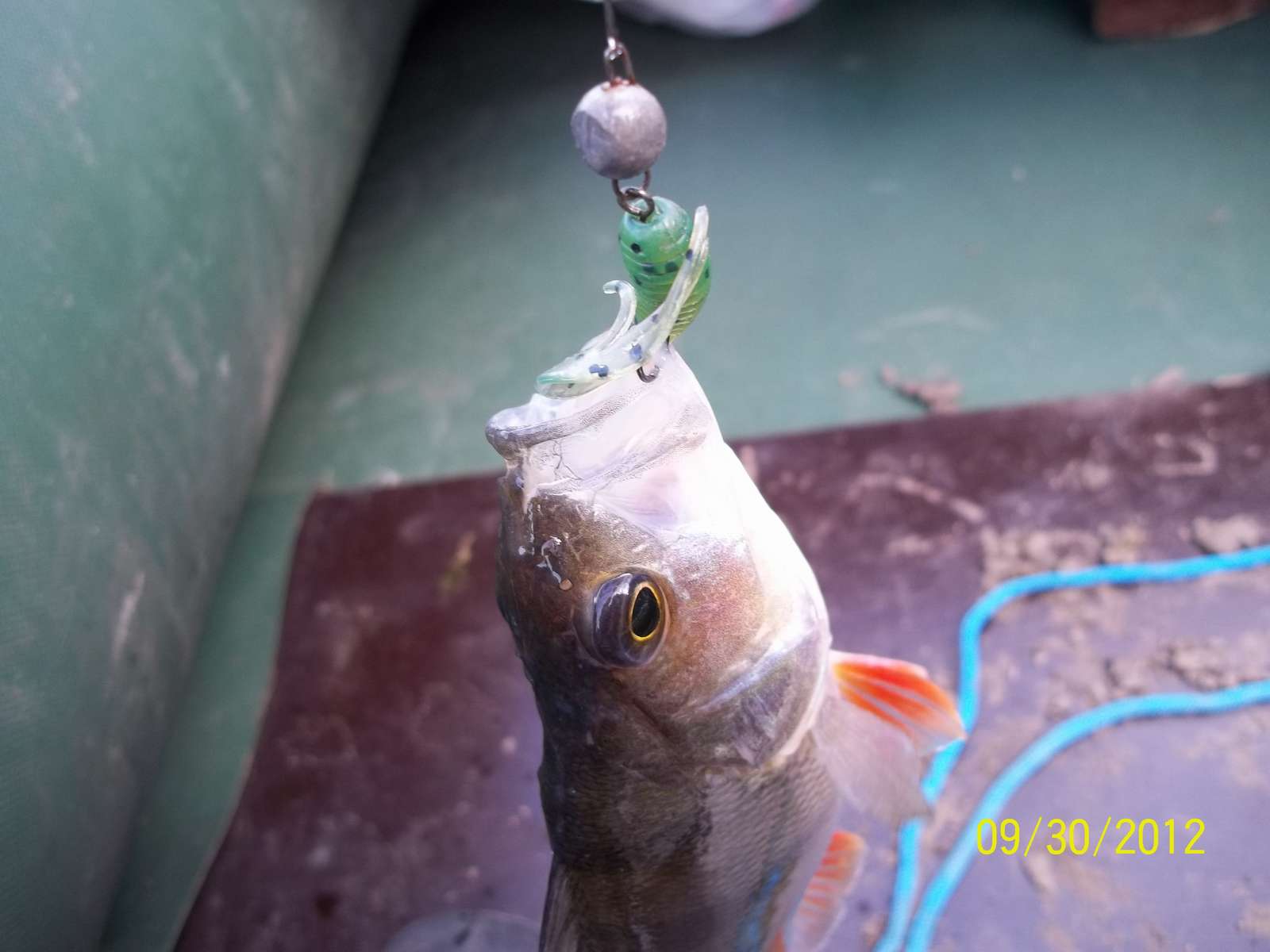 Размоченный на Волчьей воблерок не подвёл и здесь. А потом работала копеечная резина. Желтый с блёстками - просто разрывают, часто стягивают и в итоге оторвали хвост. Зеленый хавают конкретно, но экземпляры - поменьше.