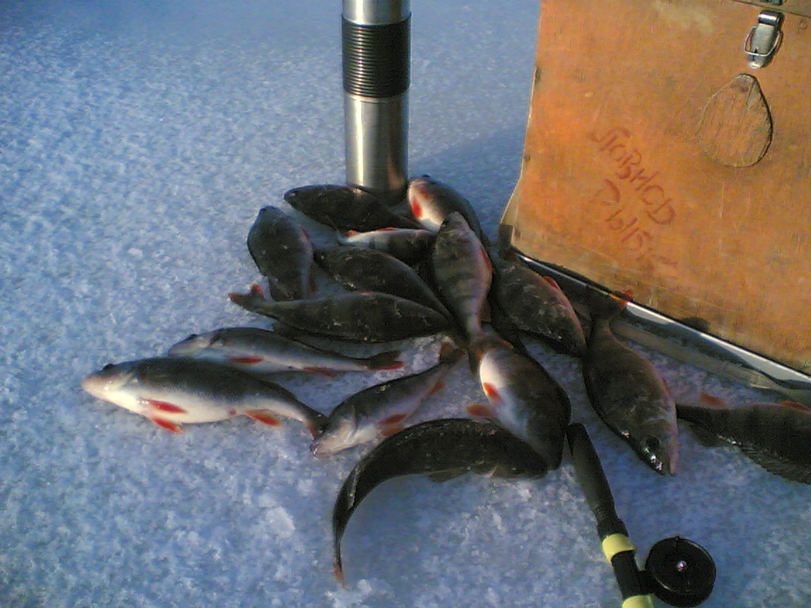 Окунь весь прошеный. Десяток лунок пустых, с одной пяток. Причем, обычно разбуриваешь возле удачной лунки