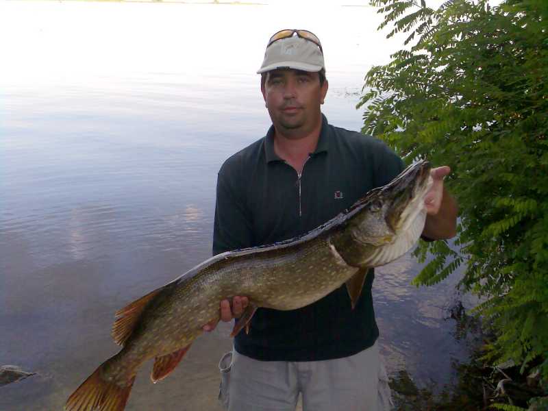 Щука весом 8,2 кг Поймана троллингом на воблер Predatek в реке Днепр в районе с. Беленькое Запорожской области 14 июля 2007. Прут - стеклопластиковый DAM Demon 3 м 30-60 тест Катушка - Китайская Кобра на 4 подшипниках. Шнур - Power Pro 20lb Подсак фирмы Cormoran :-) Полный текст отчета тут: http://fishhook.com.ua/forum/index.php?s=&showtopic=5&view=findpost&p=2343