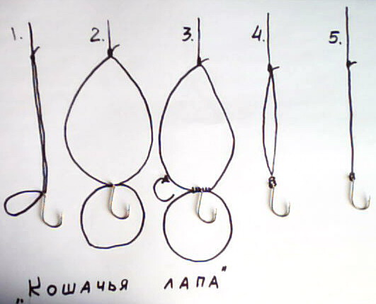 " Кошачья лапа" Сергей,выполняю обещанное, отвечаю про узел. :gimmefive2: Поводок из двойной лески предотвращает сход рыбы, но при неправильной монтировке крючок слетает с него,если перекусывается одна из лесок. Попробуйте этот узел, который крепко удержит крючок, даже если рыба перекусит одну из 2 лесок. " Кошачья лапа." Свяжите из лески петлю длинной 20-25 см.с помощью прочного узла, например двойной хирургический или иной, но крепкий и проденьте ее через колечко крючка. Растяните в стороны петлю и нити поводка и пропустите крючок через петлю и между нитями раз 5-6. Затяните узел, удерживая крючок, пока не вытяните всю леску.Не забудьте смочить леску, это обязательно. Вот и получили узел, похожий на мягкую кошачью лапу.