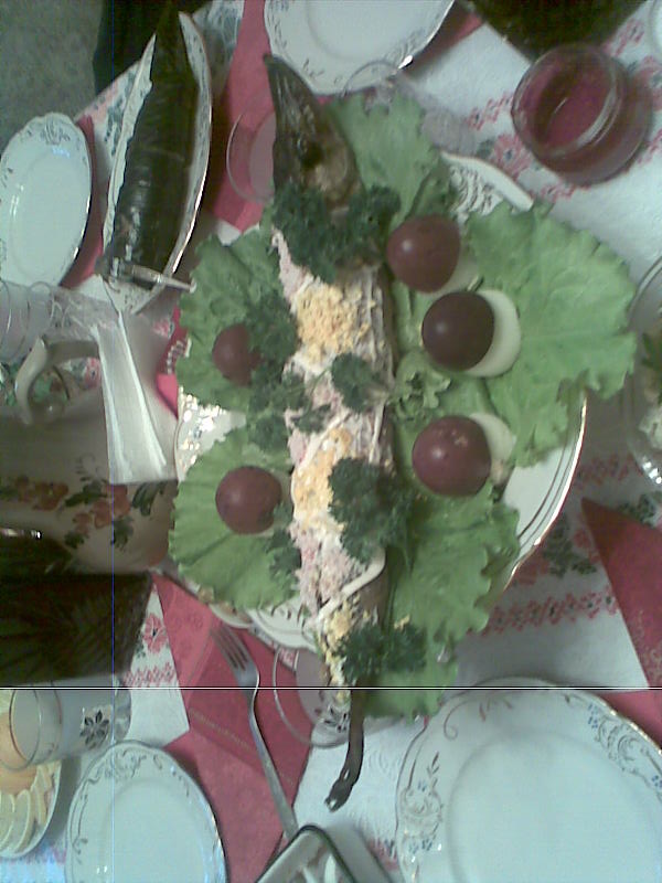 После этого начинается главная процедура по удалению из рыбы всех косточек (в домашних условиях можно использовать мясорубку). Когда все мучения закончатся, на сковороде обжариваете мелко нарезанный лук, высыпаете туда то, что у вас получилось после удаление костей, и перемешиваете. Затем берете майонез (желательно фирмы "Порчин продукт" с лесными грибами) и добавляете его в рыбу, после все перемешиваете. Подавать на стол лучше в холодном виде. Употреблять (после долгих мучений) полученный продукт можно как ложкой так и путем намазавания (накладывания) энтого на хлеб.