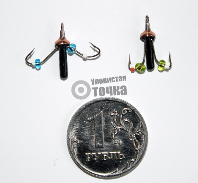 на крайняк можешь использовать нужного размера чебурашку для джига, вынув из нее скобу - вообще махом можно сделать. вместо бисера использовать кусочки изоляции от проводов (кембрики) или намотать кусочки ниток, покрыв впоследствии их лаком