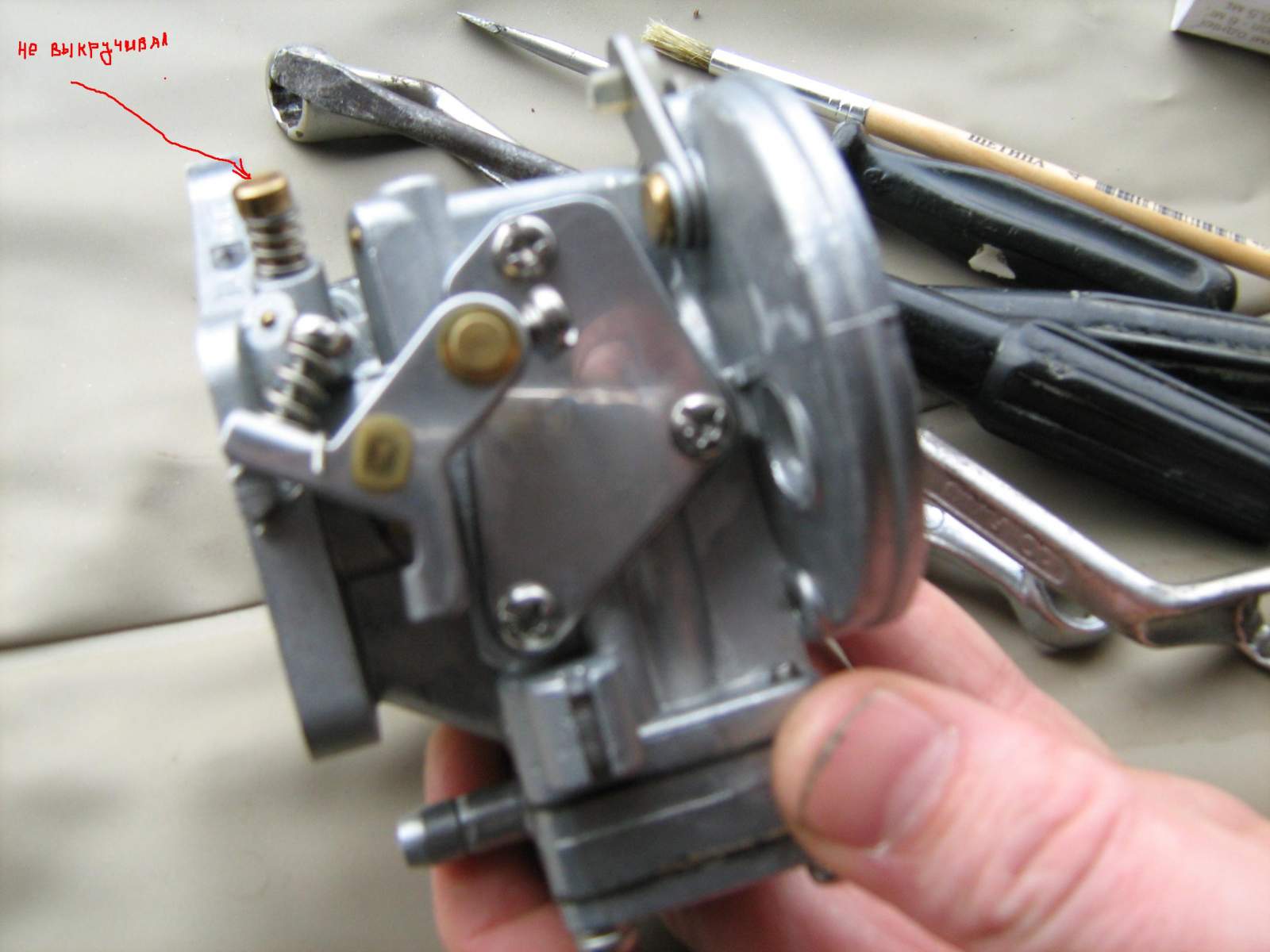 1-Когда мыл карб не стал выкручивать регулировочный винт или это жиклер (указал на фото),дабы не сбить настройки.Может под ним тоже куча дерьма собралось? Может кто знает что это за винт,что он регулирует,за что отвечает?Я так думаю это качество смеси и он особо не влияет на количество подаваемой смеси (хотя могу ошибаться)