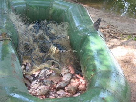 В сетях у браконьеров было: серебряный карась – 89 шт., щука – 1 шт., линь – 2 шт., окунь -2 шт., плотва – 2 шт. Общий вес рыбы был 46 кг. Сумма нанесенного ущерба составила 2 295 грн.