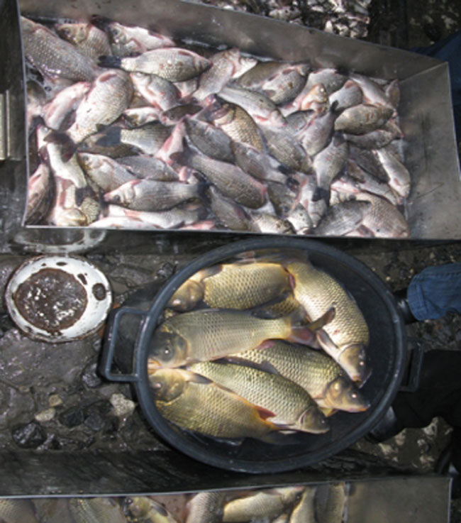Полузадохнувшуюся рыбу пытались массово ловить на Тернопольщине22.02.2013 По территории Гусятинского района Тернопольской области протекает р Началова, около с. Текливка на русле реки создан русловый водоем. Он покрыт льдом, за исключением небольшого участка возле самой дамбы. Рыба в поисках кислорода массово там скопилась. Этим хотели воспользоваться горе-рыбаки, которые массово кинулись вылавливать легкую добычу запрещенными орудиями лова. Ее черпали кто чем мог – ведрами, сетками, пауками… Набивали рыбой полиэтиленовые кульки, мешки, багажники машин. Все местное население заразилось алчностью. День и ночь невзирая на холод и на то, что фактически все были с ног до головы мокрые, но все равно черпали… черпали. На льду начинались драки из-за очередности подхода к промоине… Жадность, алчность, мат, искривленные лица… и полузадохнувшаяся рыба спасаясь от верной гибели из-за нехватки кислорода подо льдом, массово хватает ртом воздух… http://fishing-ua.com/attachments/90938/ Рыбоохрана в Тернопольской области вовремя отреагировала на поступивший сигнал, на телефон «Горячей Линии». На протяжении четырех дней и ночей она пыталась защитить одуревшую от задухи, потерявшую чувство опасности рыбу, которая чуть ли не вылазила на лед за глотком спасительного воздуха… В течении 15-19 февраля были задержаны и составлены протоколы на более ста человек. Только по одному факту нарушения «Правил любительского и спортивного рыболовства» инспекторами Тернопольрыбоохраны начислено сумму за нанесенный ущерб на сумму 12 427 грн. нанесенных рыбному хозяйству. Браконьер поймал рыбы: тарань (плотва) - 138 шт., окунь - 41 шт., Общим весом (обратите внимание ВСЕГО!)3,54 кг. После нехитрых математических действий Вы убедитесь, что массово уничтожали молодь рыбы, не более 20 грамм каждая штучка… Зачем этим потерявшим разум от кажущейся легкой наживы людям эта мелочь???? Ее нельзя на пожарить, да и в варенной виде она бесполезна. Тупое, бессмысленное убийство рыбы! http://fishing-ua.com/attachments/90939/ http://fishing-ua.com/attachments/90940/ По всей стране рыболовы пытаются помочь рыбе в трудный для нее зимний период. Тщательно отслеживают первые признаки возможной задухи, и чтобы ее не допустить сверлят лунки, рубят полыньи. Сейчас перед окончанием ледостава самое трудное время. Подо льдом все меньше и меньше остается кислорода. А так как природа сегодня стало очень зависима от человека, то наша святая обязанность протянуть руки помощи рыбе и помочь ей без потерь пережить это сложное для нее время. В близлежащих к месту происшествия селах общественные инспектора, сотрудники рыбоохраны провели разъяснительные беседы. Для этих целей в клубах было экстренно приглашено мужское население этих населенных пунктов. Это дало свои результаты. Ажиотаж понемногу стих. Но, несмотря на это представители рыболовной общественности и рыбоохраны продолжают нести круглосуточную вахту возле этой промоины. http://fishing-ua.com/attachments/90941/ http://fishing-ua.com/attachments/90942/ Уже писалось о том, что в этой реке обнаружили массовую гибель рыбы. Что это отравление реки или задуха???? Сегодня продолжают выявлять признаки гибели рыбы в реке Началово. Уже обнаружили более 2 000 тел окуня, плотвы и другой рыбы. Еще 15.2.2013 инспекторы Тернопольрыбоохраны обнаружили первые признаки массовой гибели рыбы. Причины ее до сих пор не выяснены. Пробы воды и умершая рыба 