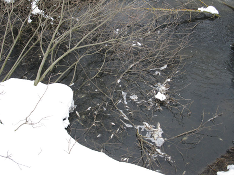 Гибель рыбы на Тернопольщине При проведении рыбоохранного рейда в Гусятинском районе Тернопольской области 15.02.2013 года инспекторами Тернопольрыбоохраны выявлен факт гибели рыбы на р Началова возле с. Текливка. Инспекторами составлен Акт обследования участка. Водоем был покрыт льдом, но в районе гидросооружения льда не было. Вода в водоеме имела неприятный запах, а рыба поднималась к поверхности воды и глотала воздух. Был совершен обход вдоль русла р Началова вверх по течению на 600 метров на этом участке было обнаружено мертвую рыбу в количестве 1899 экземпляров (плотва-1812 шт., окунь 87 шт.). Комиссией в составе: заместителя начальника Тернопольрыбоохраны Сеника С.М., начальника отдела охраны водных биоресурсов Обещика А.М., сельского головы с. Котовка и старшего инспектора СКУ Гусятинского РО УМВДУ в Тернопольской области капитана милиции составлен Акт проведения подсчета погибшей рыбы. Информацию о факте гибели рыбы было направлено в Государственной экологической инспекции в Тернопольской области. Фактические причины гибели водных биоресурсов и объем ущерба нанесенного рыбному хозяйству могут быть установлены после получения всех анализов проб воды и рыбы, анализы которой проводят органы ветеринарной службы, а так же лаборатория экологической инспекции. Пресс служба Тернопольрыбоохраны **************************************************************** Если подтвердится факт отравления реки бытовыми или производственными стоками, то это будет ярким подтверждением того, что срочно необходимо ужесточать наказание за нарушение правил охраны вод (их отравление) предусмотренное статьей 242 Криминального Кодекса Украины. На данный момент согласно этой статье за загрязнение водоемов и массовое убийство в них водных живых ресурсов предусмотрено наказание в виде штрафа от ста до двухсот необлагаемых минимумов (1700-3400 грн.) ВСЕГО ТО!!!! Статистика: в прошлом году производственными и бытовыми стоками полностью или частично было убито все живое в ДЕВЯТНАДЦАТИ малых реках. Предлагаемые Ассоциацией рыболовов Украины изменения: Кримінальний Кодекс України Стаття 242. Порушення правил охорони вод 1. Порушення правил охорони вод (водних об'єктів), якщо це спричинило забруднення поверхневих чи підземних вод і водоносних горизонтів, джерел питних, лікувальних вод або зміну їхніх природних властивостей, або виснаження водних джерел і створило небезпеку для життя, здоров'я людей чи для довкілля, - карається штрафом від восьми тисяч до десяти тисяч неоподатковуваних мінімумів доходів громадян (від 136 000 до 170 000 грн.) з позбавленням права обіймати певні посади чи займатися певною діяльністю на строк до п'яти років, або обмеженням волі на той самий строк. 2. Ті самі діяння, якщо вони спричинили загибель або захворювання людей, масову загибель об'єктів тваринного і рослинного світу або інші тяжкі наслідки, - караються обмеженням волі на строк до п'яти років або позбавленням волі на той самий строк. В основном по двум причинам происходит это бессмысленное жестокое убийство водоемов: в первых из-за элементарной жадности. Если даже предприятие и построило современные очистные сооружения, то для того, чтобы экономить на смене дорогостоящих фильтров вся отрава предприятия по вырытым в обход очистки каналам напрямую сливается в реку… Яркий пример этому: в прошлом году в Житоми