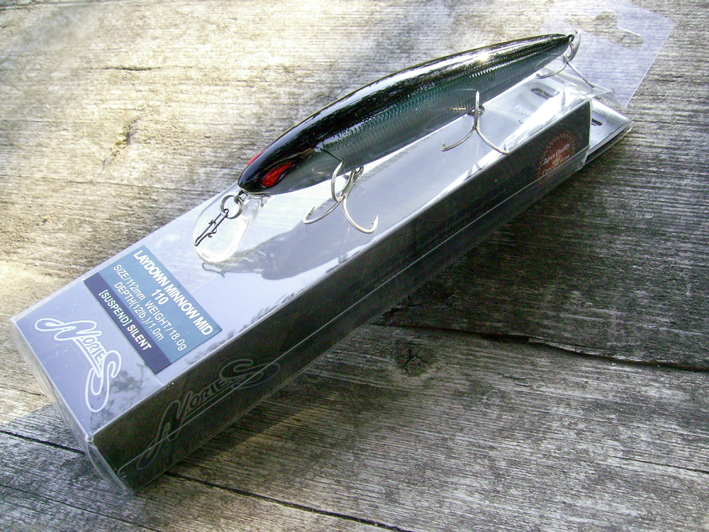 У меня еще есть его младший братишка- Nories Laydown Minnow Regular 90, чуть более глубоководный и безшумный. Купил в том году чисто на пробу, приглянулся цветом и тремя тройниками. На одной рыбалке проявил прямо чудеса, на фоне общеколективного безклевья у друзей, сей узкоглазый Буратино-сан принес мне пару прищепок, которые были безжалостно утоплены, а воб занял место в боевой коробке. Причем у друзей, переполоскавших все свои немаленькие арсеналы, не было ни одной поклевки. Ловля происходила на Северском Донце в районе Иличевки, а там достаточно сильное течение. А когда увидел в продаже старшего мелководного брата, то не раздумывая купил.