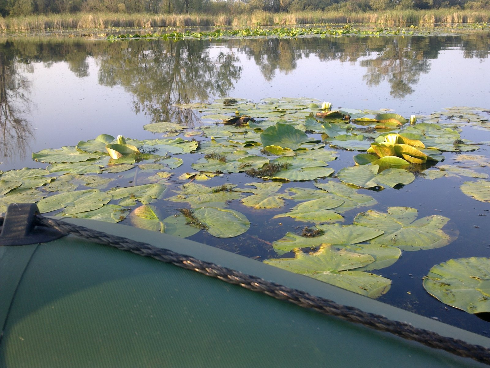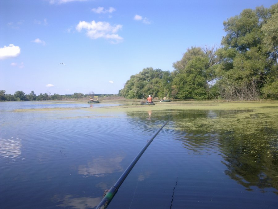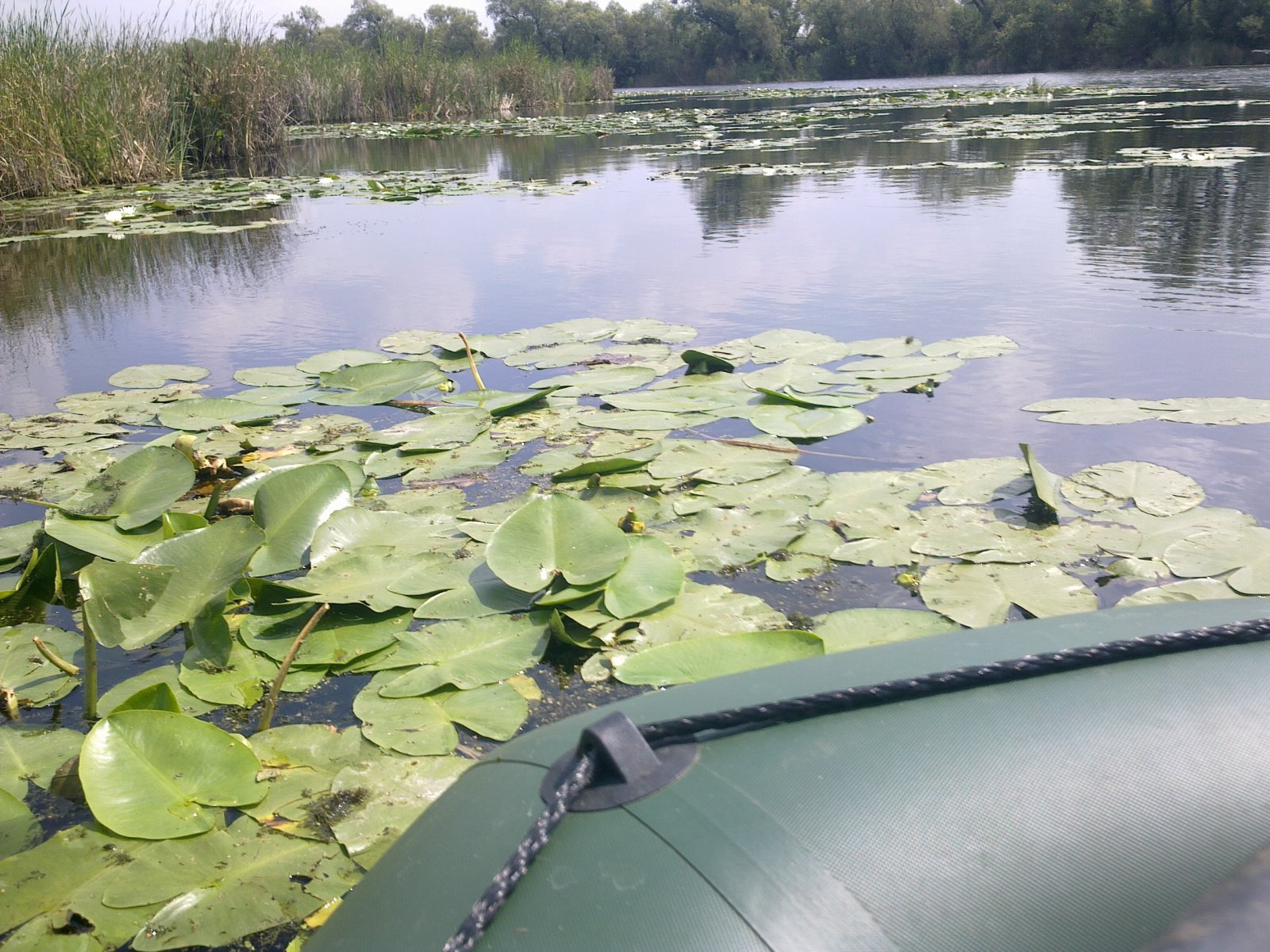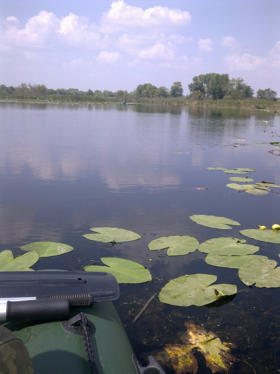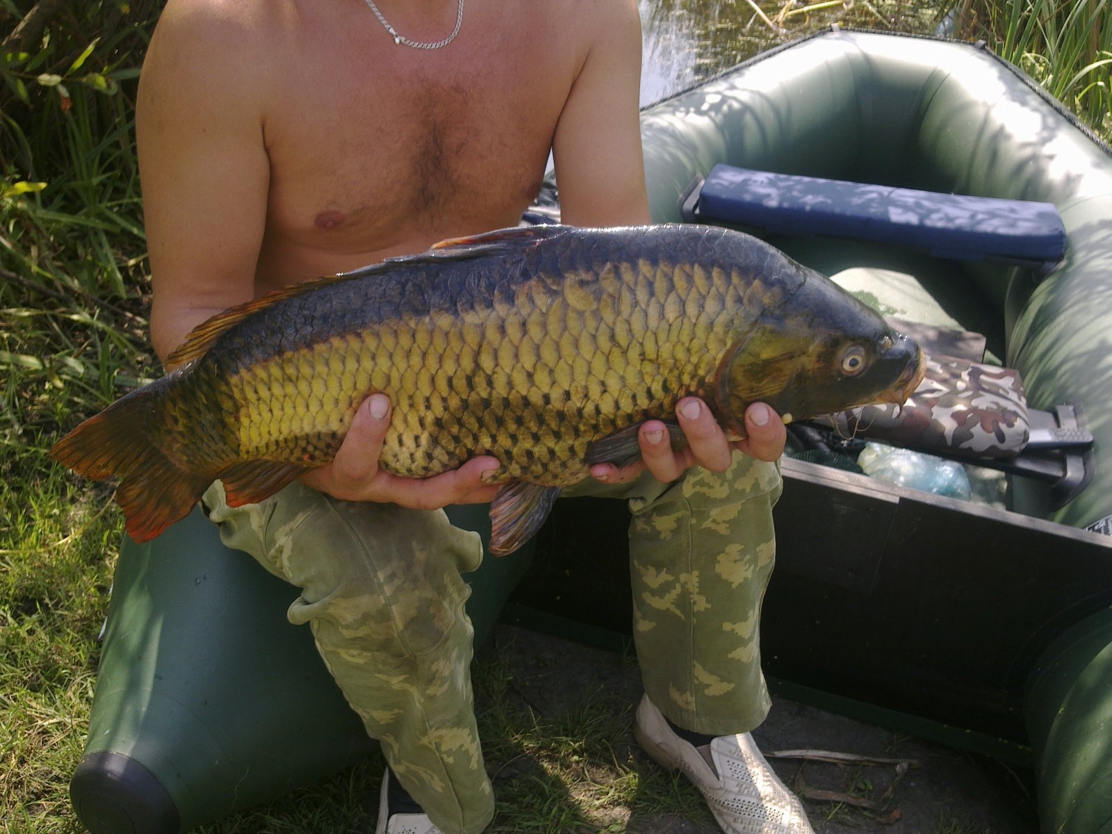 Здравствуйте. Отпуск!!! Можно больше времени уделить рыбалке. По приглашению коллеги по работе и рыбалке, который проживает в г.Жашков рыбачил на реке Горный Тикич, в Жашковском районе. Рыбачили с лодки. Цель: карп, карась, линь. Карп на горох, остальная мирная рыба на опарыш. На реку приехали где-то в 7,00 часов утра. Накачали лодку и на воду. Красота, утренняя река, кувшинки, цветущие лили, свежий воздух, всплески рыбы – одним словом живописные места. Прикормили. В этом месте реки рыбачил впервые. (Небольшое отступление: Хотя много летних дней детства и ранней юности прошли в тех местах (за несколько километров от места рыбалки о которой пишу сегодняшний отчет), а точнее на притоке реки Горный Тикич – Конелка, когда родители завозили меня с братом, почти на все лето к бабушке в деревню. Каждый день, с утра и до вечера, проводили на водоемах купаясь и ловя карасей величиной с лавровый листок (наверное оттуда – с детства и любовь к рыбалке - эх навеяли воспоминания). Однажды насчитали пойманных 500 штук (даже не помню что бабушка с ними могла делать тогда – помню жарила) но помню что даже умудрялись их сушить, хотя после сушки там были наверное одни кости. За последние лет десять рыбачил на реке Горный Тикич пару раз, на поплавочные удочки и в других местах – в местах где река очень узкая – несколько метров. В месте рыбалки о которой пишу река разлилась на примерно сотню метров. Для рыбалки с берега мест почти нет, все заросло камышом, травой, кувшинкой (а если и есть то их оборудовали местные рыбаки), дорога грунтовая, с уклоном, в дождливый сезон проехать даже джипом и то проблематично. Но вернусь к рыбалке. Я ловил на поплавочные и донные удочки, карп молчал, изредка поклевывал ладошечный и помельче карасик (словно вернулся на 40 лет назад, в детство). Выудив с десяток карасей (и плотвичек) прекратил их ловить (я ему и так должен – выловив сколько в детстве – хотя он больший и не растет) перезарядил все снасти на карпа. Но со слов коллеги в тех местах попадаются и большие экземпляры карася, 500-1000 грамм. Коллега же ловил только на одну удочку оснащенную мормышкой, боковым кивком и инерционной катушкой, наживка горох – там так ловят все рыбаки кто охотится за крупными экземплярами (удилище стеклопластиковое старое советское 6 метров; боковой кивок сделанный из пружины из автомобильного сальника толщиной со стержень шариковой ручки, крепится к удилищу специальным самодельным приспособлением, чтобы шнур проходил в средине пружины; катушка типа Ленинградской). На эту снасть у коллеги было поймано пару карасей весом 200-300 грамм. Было несколько невытянутых карасей, которые слетали с крючка в воздухе – видно горошина великоватая наживка для них. В 9.30 произошел случай который украсил всю рыбалку. Лодки там не якорят а выплывают на густые заросли кувшинки которые и держат лодку. Так вот, у коллеги в 9,30 клюет неплохой карп (последующее взвешивание показало более 5,5 килограмма), вываживание которого приводит к тому, что лодку начинает стягивать на чистую воду. Быстро сориентировавшись я сбрасываю остальные удочки на густые и широкие листья кувшинки и беру подсак, тем временем коллега тягается с карпом, который тянет нас уже по открытой воде, но после нескольких минут борьбы я беру красавца в подсак. Беремся за весла и гребем несколько десятков метров к лежащи