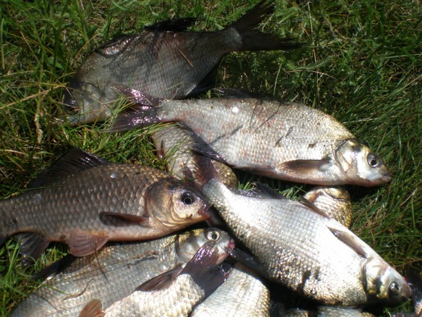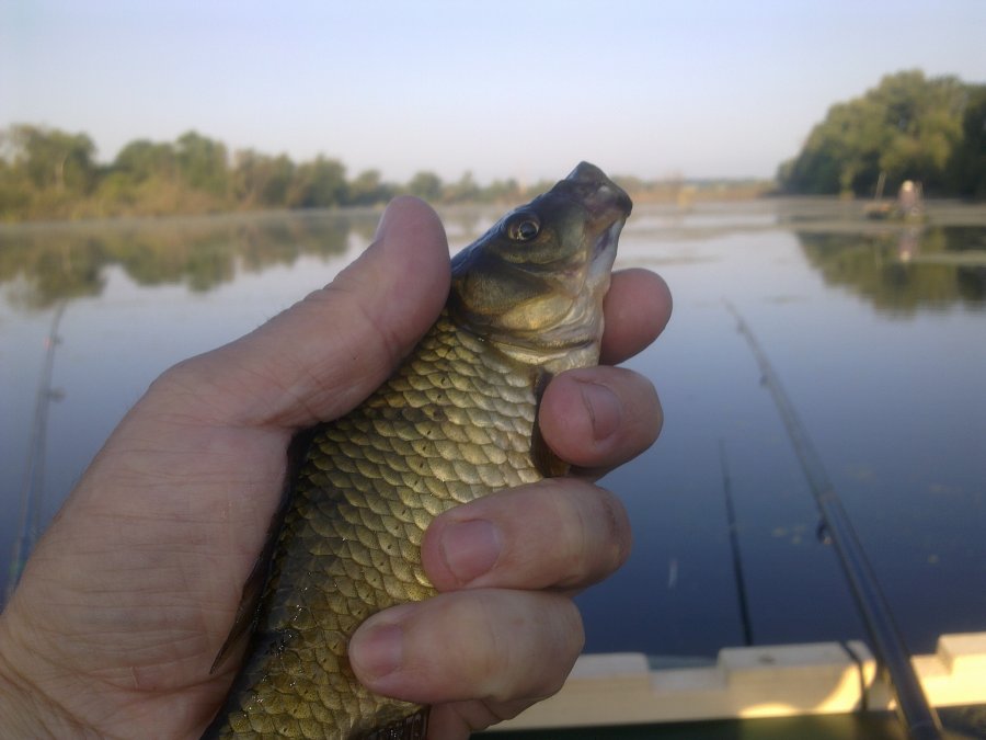 В субботу, с тремя коллегами выезжали на реку Горный Тикич порыбачить с лодок. Погода нормальная, без дождя и ветра, на день немного жарковато. Ловил на удочки, из наживки с собой было: червь, опарыш, манка, кук, перловка, мастырка, горох. С утра пробывал ловить на все. У меня изредка поклевывал карасик (на фото) только на червя, все остальные наживки игнорировал. Коллеги нашли карася и отловились получше. Фото додаю. Всем удачи!