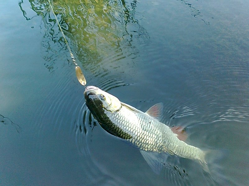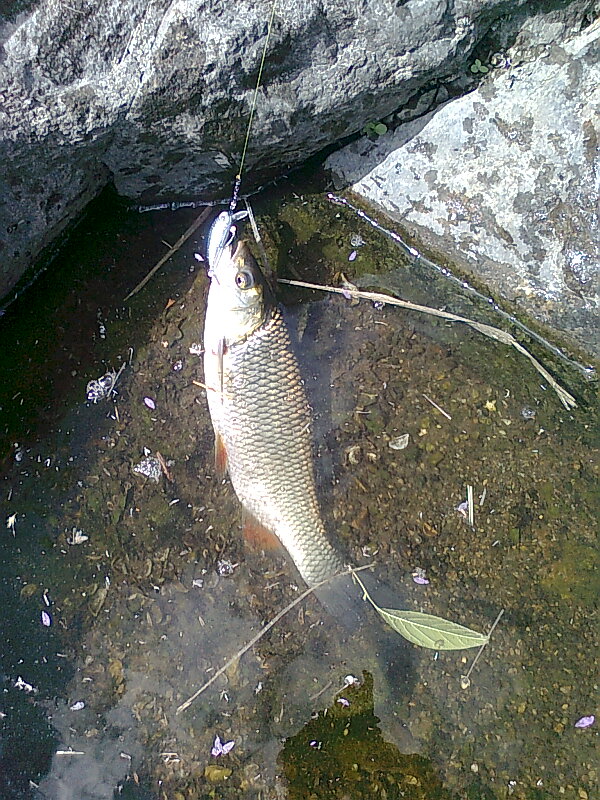 Но всё одно приятно на течении с ним бороться. Поклёвка мощная и неожиданная. Хоть и размеры невелики.