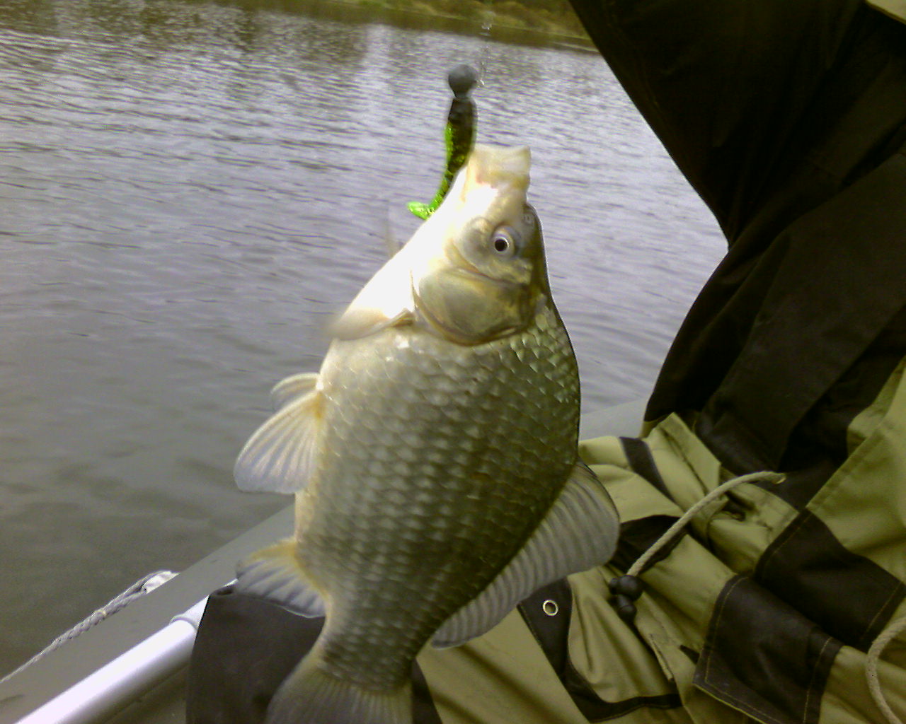Не раз слышал от рыболовов о странном поведении карася в зимний период, когда он ловился на балансиры. Вот довелось и мне испытать карасевую поклевку на джиг-приманку. За один световой день было поймано три карася (случайностью это уже не назовешь) на виброхвост. Поклевки следовали на начальной стадии подмотки шнура, после падения приманки на дно. Рыболовы - "карасятники", карась голодает!!! На фото два разных карася, но похожие, как братья-близнецы. ЗЫ. При взвешивании стрелка весов остановилась на делении 680 гр.