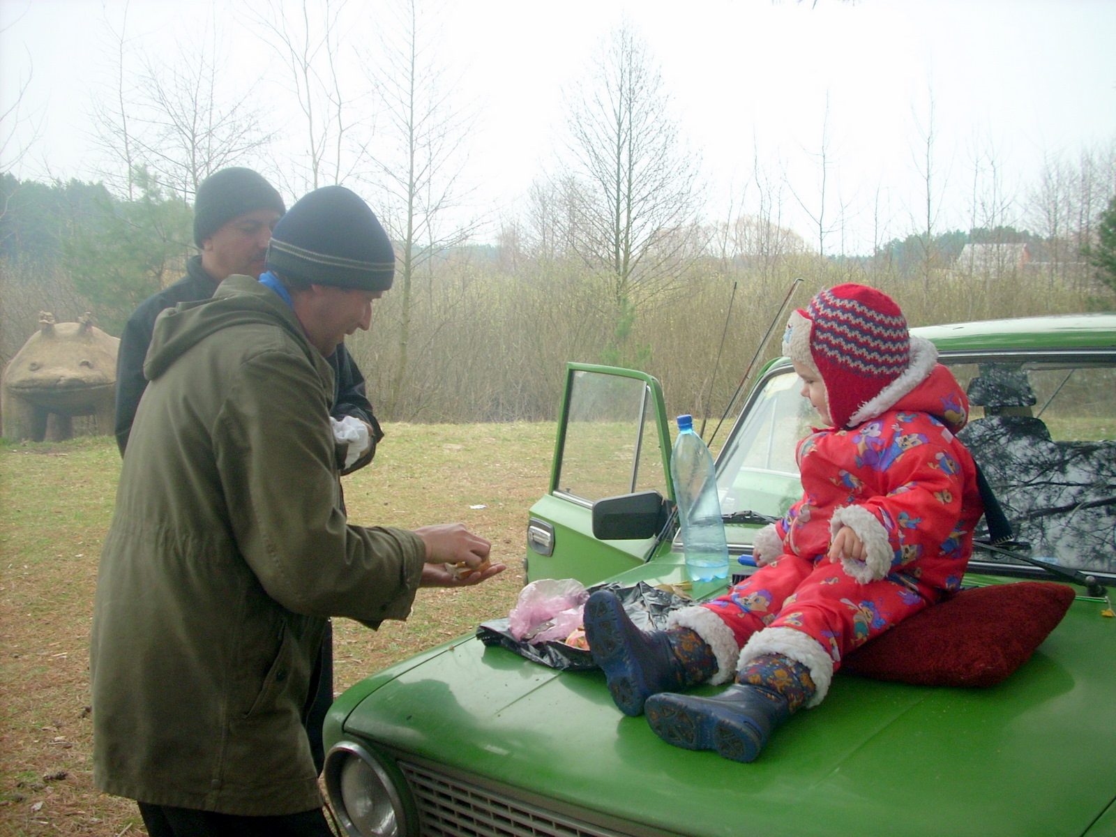 "На рыбалке – пикнике с семьей" - 2 1. Рыбаки перед рыбалкой 2-4. Нет ничего вкуснее жареного сала на костре 5. Встреча татуськи с рыбалки - как не бросиш спиннинг на землю? 6. Вот такие бегемотики