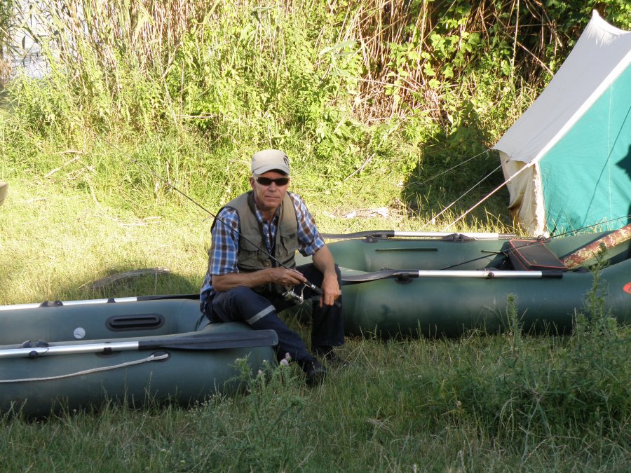 Потратив на дорогу (если ее так можно назвать) 3 часа на 115 км, мы в четыре часа дня на речке. Быстро разбиваем лагерь, немного перекусив и мы уже на воде в надежде на хорошую рыбалку. Я в этих местах рыбачу не первый год, поэтому проблем с выбором места ловли нет. Встаем с товарищем на якорь в 50-ти метрах перед перекатом. Ставлю проверенного Джакаловского Черри, первый заброс, второй – тишина. В товарища поклевка небольшого жереха на вертушку Пегас – начало есть, быстро меняю приманку на USAMI SHIKIMA и на первом же забросе этот долгожданный момент – Удар которого ждал целый год, после непродолжительной борьбы красавец жерешок у меня в руках, фото сессия и рыбка помахав мне хвостиком уходит в родную стихию. Настроение улучшается с каждым следующим забросом, очередной удар и уже голавлик фотографируется на память, у товарища поклевка замечательного трофейного голавля около 1 кг на вертушку Мепс 3-го номера, долго он с ним боролся, но умение и выдержка победили. У меня клевали не большие жерешки и голавлики, попадался зачетного размера окунь. Быстро пролетели вечерние часы ловли, которые принесли незабываемые моменты борьбы с сильной рыбой. На берег вышли когда уже практически темнело, ужин у костра, чай, рыбацкие байки и надежда на завтрашний клев.