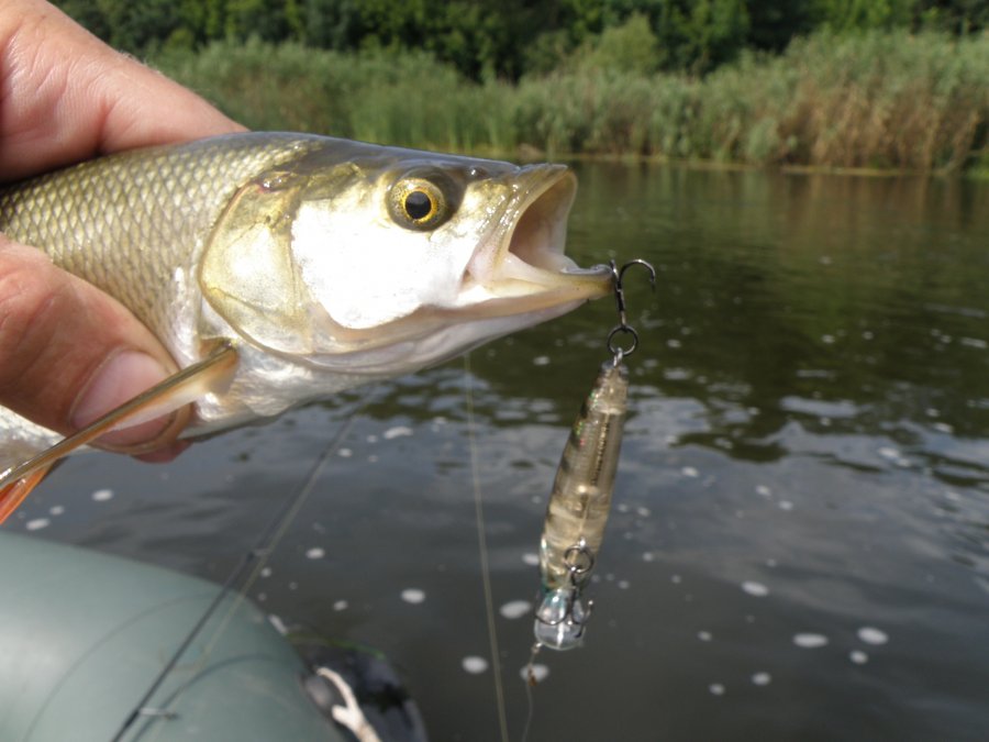 Насытившись первыми поклевками, немного смещаюсь в сторону. На очередном забросе удар на падении и красавчик жерешок в лодке, жерех не большой (около 500-700 г) но удовольствие доставлял огромное. Клевал он азартно, но пара-тройка поклевок и приманку надо было менять, видать он привыкал. Замена приманки и снова удары и сильнейшее сопротивление при вываживании. За четыре вечерние часа рыбалки десятка четыре рыбин я в руках наверное держал (вся рыба была отпущена), а ударов и сходов было миллион:) А где же голавль? Не было ни одного.
