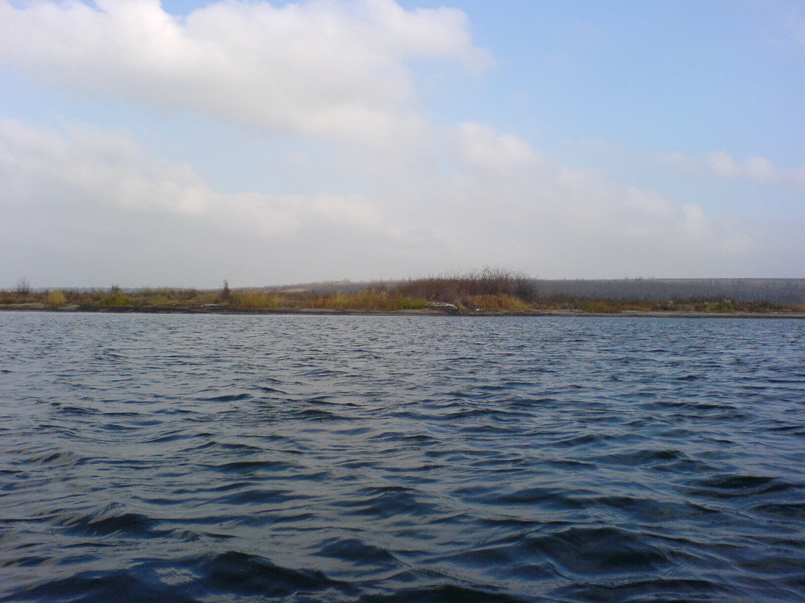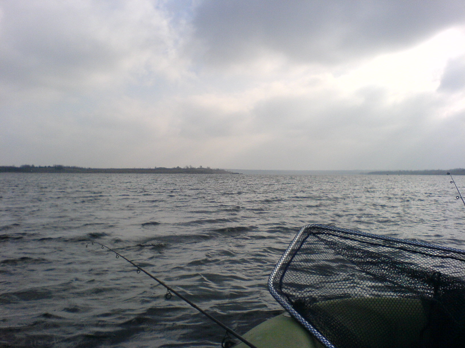В 4.00 мы на берегу, распаковываем, качаемся, вяжем снасти. Поход Сани на берег сопровождается воплем: "Мля, а где вода?" Бежим на сплав и наблюдаем картину маслом - вода отошла от берега местами более чем на 10 метров. Такой сброс произошел буквально в течение 2 суток и продолжался в ночь нашего приезда. Вода уходила прямо на глазах, пока мы отмечали, положенные 50 капель коньяка "с приехалом", вынесенные на припайную кромку лодки через 30 мин оказались на песке. Оптимизьма это не добавляло, но надежда умирает последней. Отзвонили криворожцы, они выехали в нашем направлении, рыбачить собрались у дамбы. Пожелал счастливого пути. Ожидая рассвета, строим коварные планы, куда и кто пойдет. Поделили, закупленного Саней живца. Теперь мы во всеоружии. Едва рассвело, первым не выдержал Мишка, он отчалил и покидывая 10 гр джиг направился с песчаному острову. Саня никак не мог справиться с клапаном своей лодки, общими усилиями Васи и меня находим проблему - воздух пропускает отклеившееся (привет Китай) гнездо клапана. Саня остается на берегу клеить лодку. Мы с Васей плывем на его любимое место - в корчи. По пути наблюдаю, что вода очистилась и дно просматривается даже на 3 метрах глубины, что также вызывается смутные сомнения. Окончательно рассвело. Большой привет Гисметео, вместо солнца небо плотно закутано облаками, которые раздуло только к обеду, ветер не тот, да и в процессе 3 раза менял направление и силу. Якоримся в корчах. Тут же замечаю поставленную вокруг сетку. Хозяин нашелся сразу, подгреб и начал ее выбирать. Пожелав ему "попутного" сказали выматываться и выгребать быстрее. Особо быстро у него не получалось, т.к. сетка была не менее 1 км и вода была очень холодной. В сетях было пусто. Решаю снарядить кружок, только пускаю его резвый живец влетает в корч, выудить его оттуда невозможно, обрыв. Желание ставить еще один отпало сразу, да и не мое это. Заброс за забросом обстреливаю корчи серебристым предателем-3 с черной спинкой на 10 гр джиге, результат ОП. Кольца заметно обмерзают, меняю приманки, глубину и темп проводки, но щука не реагирует, хотя и присутствия ее тоже наблюдается. Предпринял решительный поход на веслах через весь разлив на яму, показанную местными. Там запустил живцовку и перепробовал пол арсенала - ОП. Звоню Васе - у него "шнурок" на живца и 2 нереализованных поклевки. У Мишки - 0. Возвращаюсь в корчи к Васе, еще час хлещу воду спиннингом. Ветер заметно усилился и лодку начинает захлестывать, ухожу от него за песчаный остров, на любимые ямки. Но и там ОП не отпускает, наливаю ему пива и даю закурить с надеждой что он отстанет. Пройдя за островом выхожу на ветер, вижу Мишку, решаю идти к нему, упаковываюсь в резину, знаем мы все эти непромокайки, спиннинг в режиме дорожки, беру весла и пошел против ветра. При пересечении фарватера ОП зазевался, видимо пиво свою роль сыграло, четкий злой удар, подсечка на том конце шнура наконец-то кто заупирался, 30-40 сек борьбы и зачетная килушка шевелит шабрами в подсаке. Рыба все в пиявках и не пустая, взяла все тот же предатель-3 с черной спинкой. Дальнейшее исследование фарватера больше желающих клевать не выявило. У Мишки в активе один "шнурок" на джиг. Выплывший, наконец после заклейки Саня тут же на приямке ловит "шнурка", Мишка смещается ближе к нему по фарватеру. Я выгребаю на берег, здесь у меня свой интерес. Чуть