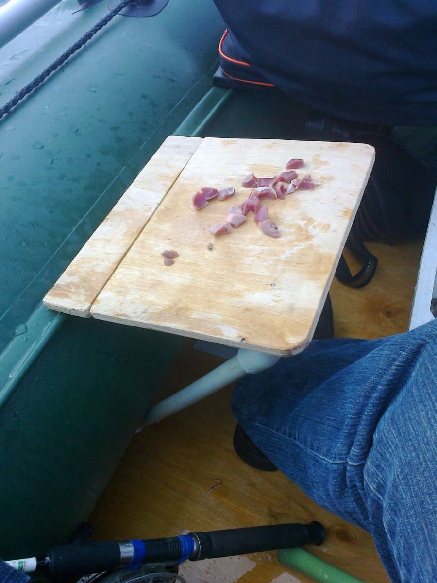 Фото0082.jpg Сделал себе вот такой небольшой столик. Передвижной, складывается. Удобно наживочку порезать, самому перекусить или кофейку попить.